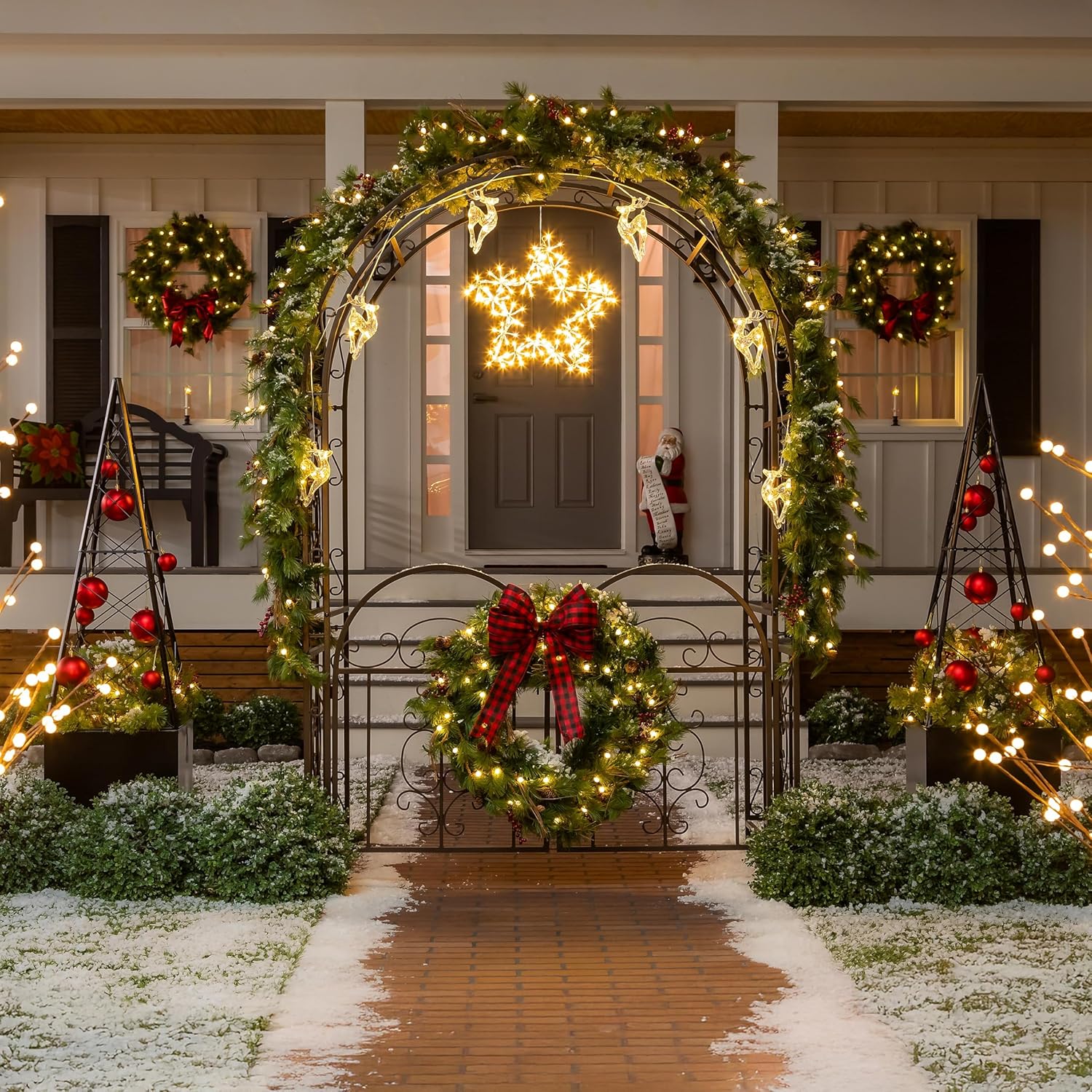 - ROBUST AND WEATHER-RESISTANT: Crafted from premium metal, this 54 inches wide outdoor arbor is designed to withstand various weather conditions, ensuring longevity and durability. Whether it's rain or sunshine, this arbor remains a steadfast addition to your garden, offering a reliable structure for your fence privacy screen or solar fence lights.