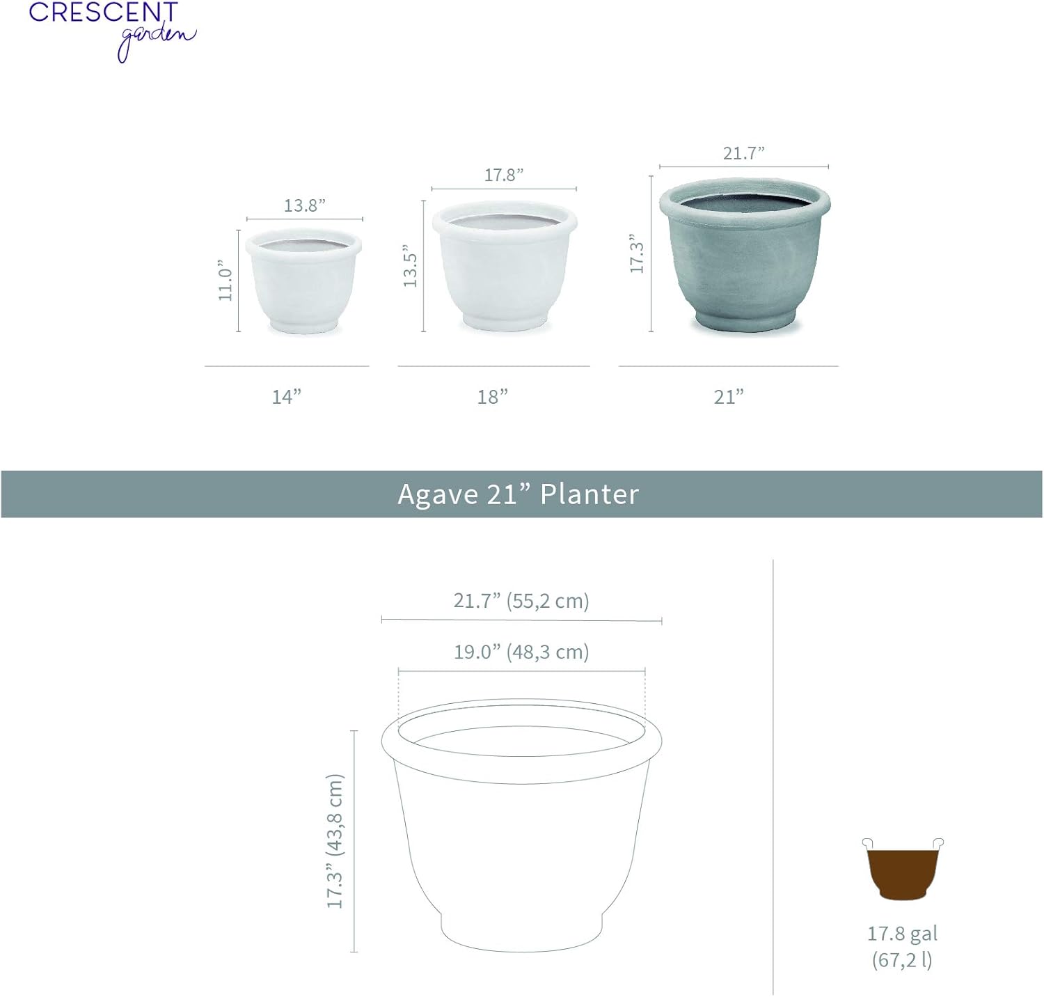 Crescent Garden Agave Planter, Charming Old-World Plant Pot, 21-Inch (Caviar Black)