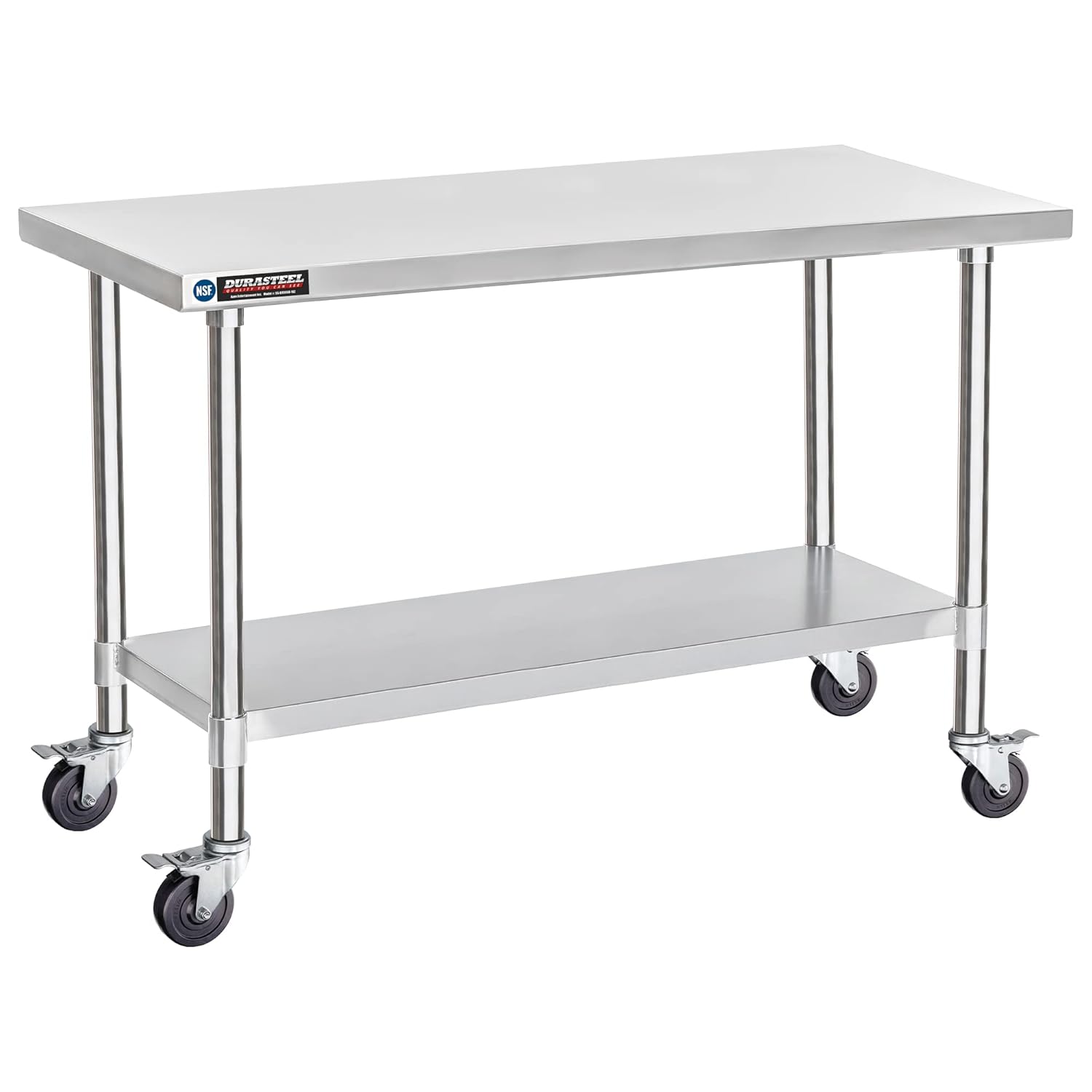 DuraSteel 30x60 NSF Stainless Steel Cart - Heavy Duty Food Prep Table with Undershelf - Rolling Kitchen Island on Wheels for Commercial Restaurant Kitchen, Garage, Outdoor Cooking, BBQ Grill, Counter