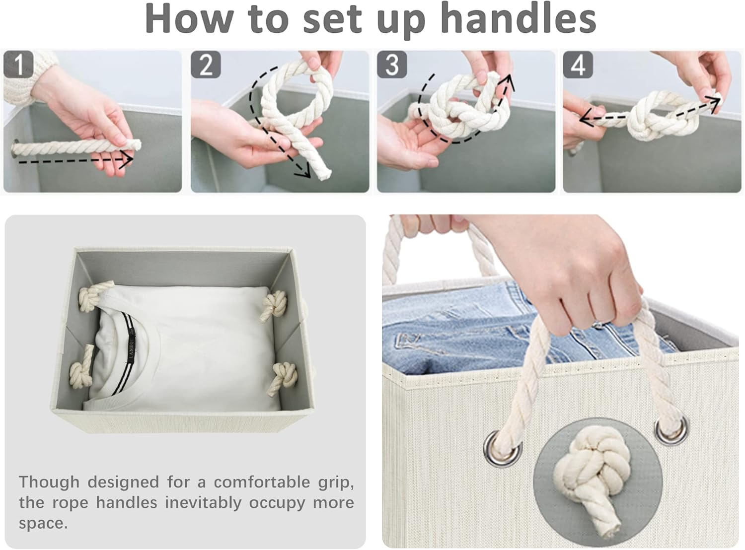 • The storage basket with 2 soft rope handles can support a weight of up to 30 pounds.