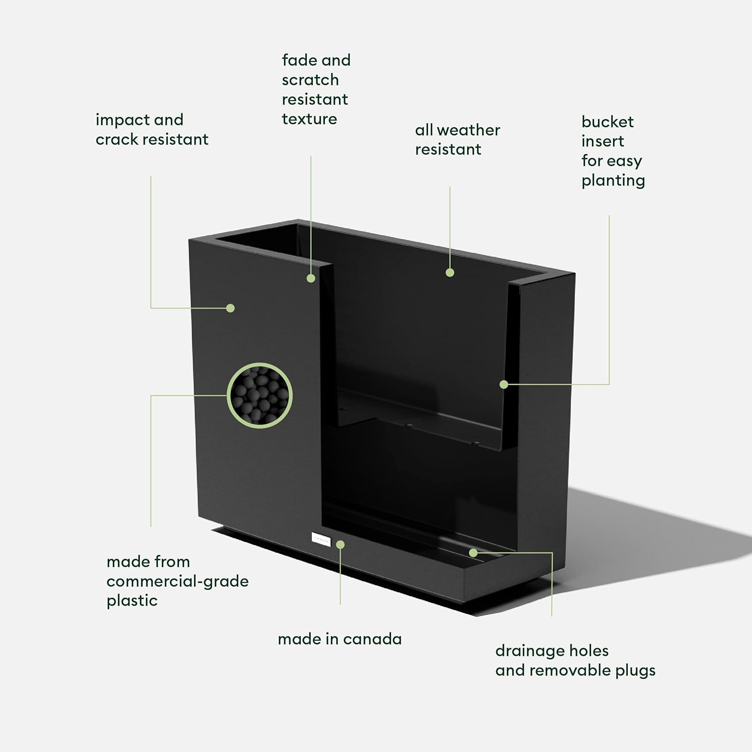 Veradek Block Series Span Plastic Planter - Tall Rectangular Planter for Indoor or Outdoor Patio/Porch | Durable All-Weather with Removable Insert Bucket | Modern Design for Plants, Flowers, Garden
