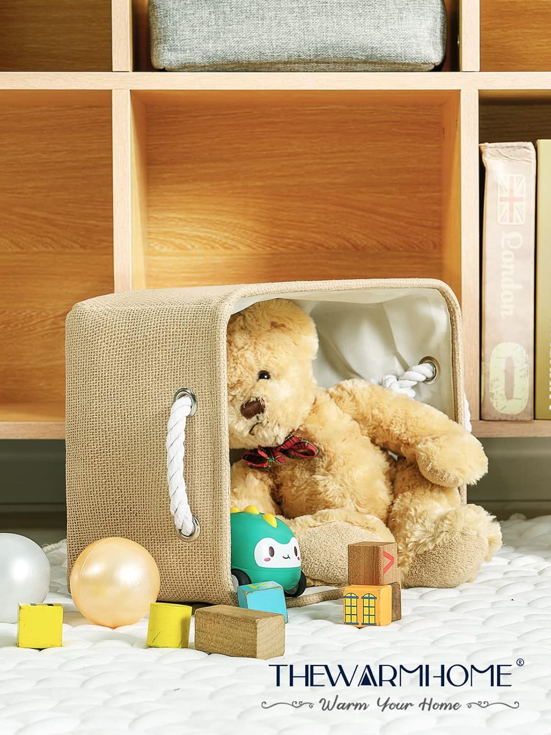 - MULTI-PURPOSE:Great for books,magazines,toy storage,dog toys basket,shoe basket,clothes basket,shelf,baby bin,pet toy storage,towel basket,blankets,decorations,office supplies,DVD and gifts,Decorative basket ideal for living room,bedroom,bathrooms,utility room,kids room,Nursery Room,craft room,playroom,closet,dorms,condos,laundry room,toilet or even in the hallway.Neutral color can match a lot of home styles- keeping your home nice and tidy