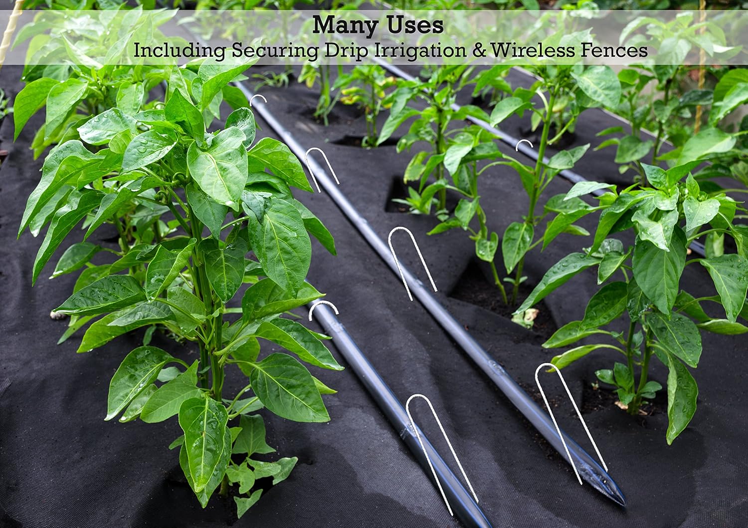 - GALVANIZED CONSTRUCTION delays rusting process and provides countless uses including securing weed barrier fabric, pet containment systems, drip irrigation systems, erosion control matting. Want to reuse them? No problem - pull them out of the ground and use them for a different application