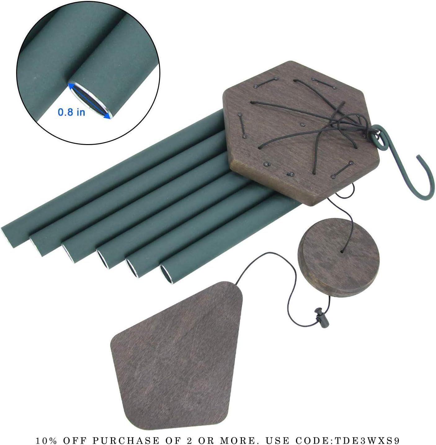 - Wind Chimes Outdoor- 30'' is the best size for your Outdoor and Indoor Decor. This decorative chime comes with a stronger metal hook, easily to hang. The longest tube is 14.3''. 6 aluminum powder-coated tubes are hand-tuned by our professional tuning experts to achieve a superior musical performance. Heavy duty nylon cording high density beech wood striker made from FSC-Certified wood, for a clear tone and resonances. Thick tubing wall creates a longer lasting deep tone. The sound is soft, deep tone and rela
