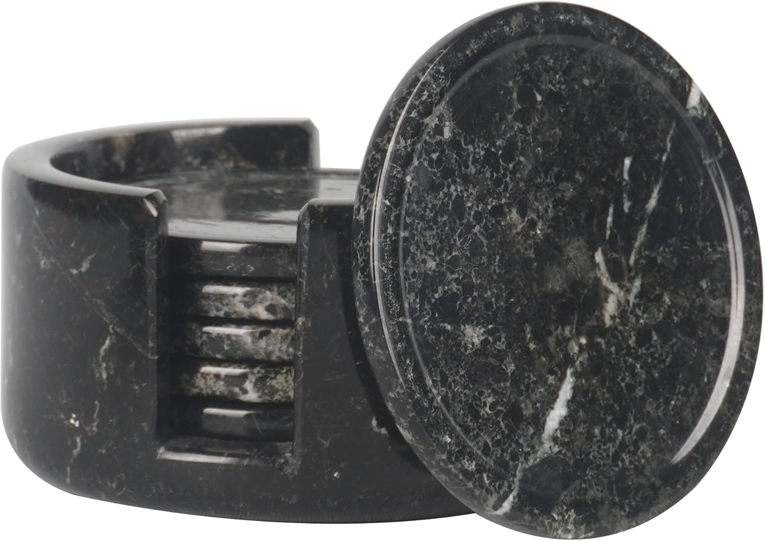 Marble Coasters Set of 6 Black 3.5 Inch Round Coaster for Drinks with Holder, Drink Coaster for Tabletop & Coffee Table Decor, Ideal Home Decor House Warming Gifts