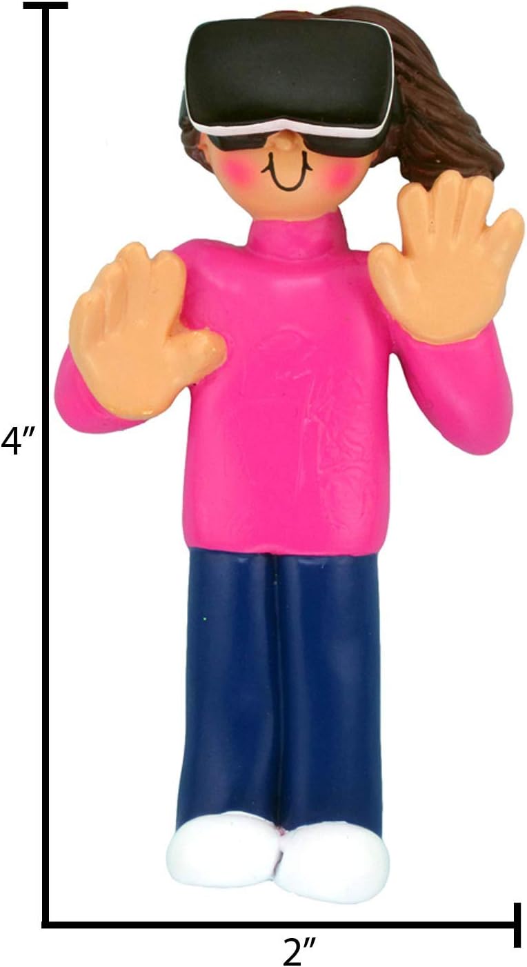Elves Personalized Video Game Ornaments 2024 - Brunette Girls Gamer Ornaments for Christmas Tree