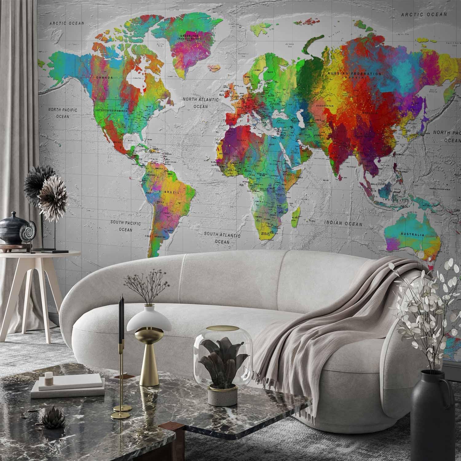 artgeist Wall Mural World Map 118x83 in - XXL Non-woven Wallpaper Fleece Wall Decor Photo Print Picture Image Design Home Map of the world k-A-0128-a-a