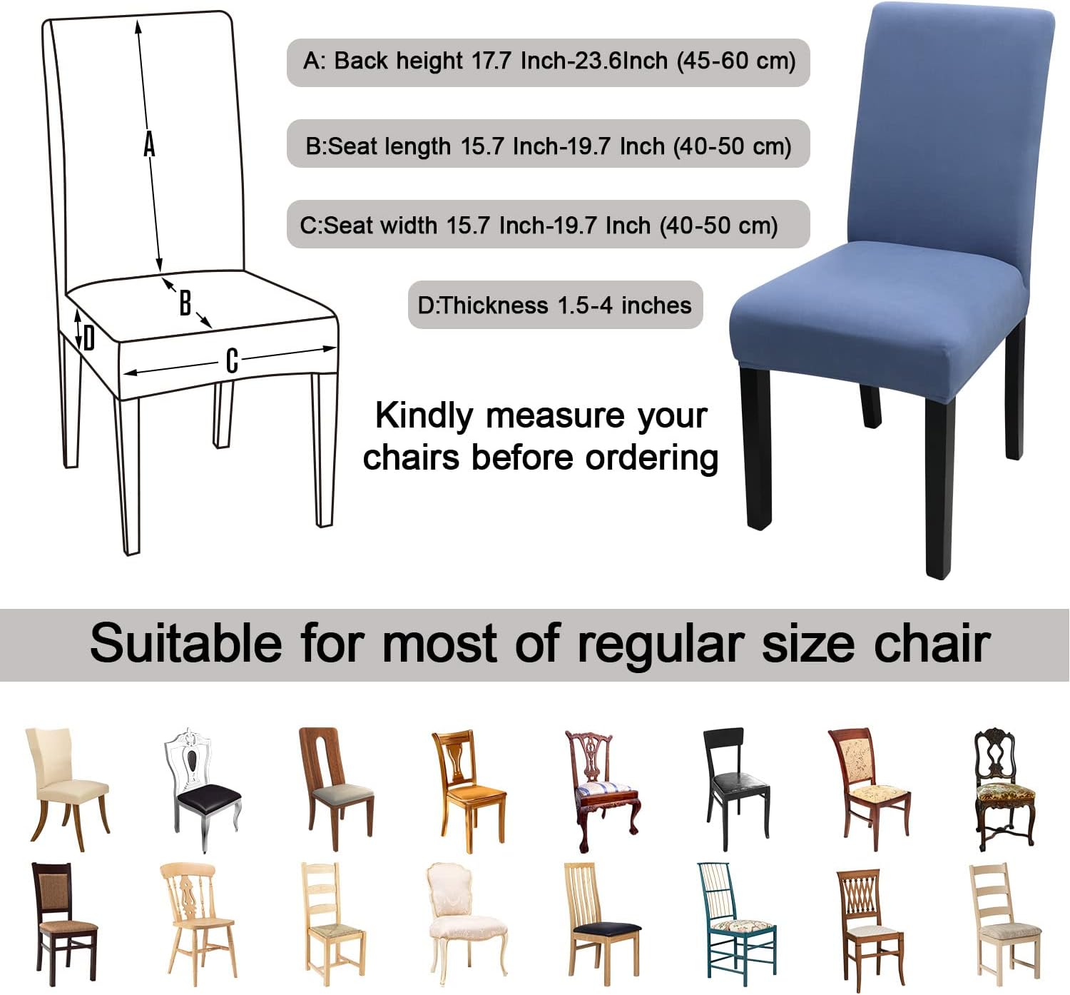 - 【High Quality of Chair Cover】- This dining chair slipcovers are made of polyester blend and stretchy spandex fabric, soft, comfortable and wrinkle resistant, no ironing required;Stretchable Material,stretch that recovers quickly,secure fit with sewn-in elastic hem.