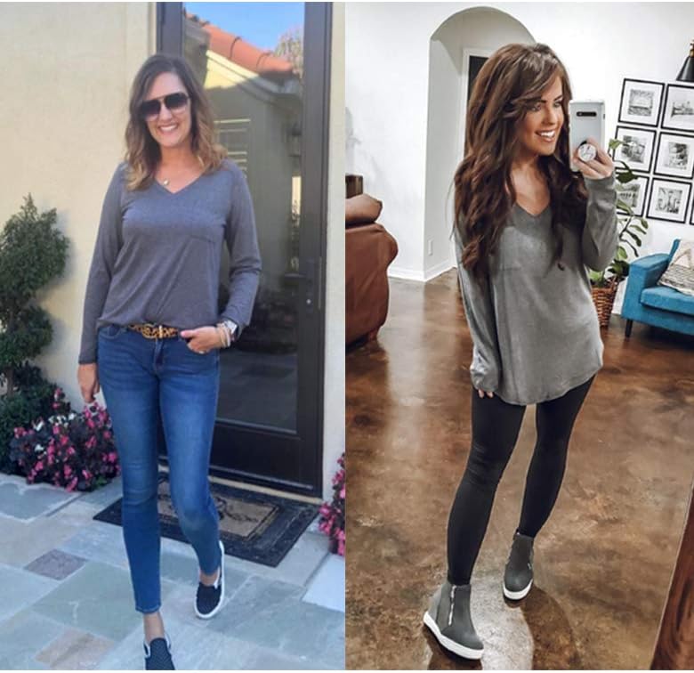 - Loose fit shirts.You can Pair this basic tops under a jacket,with jeans,leggings or a shorts in spring,fall and winter.A wardrobe must-have!