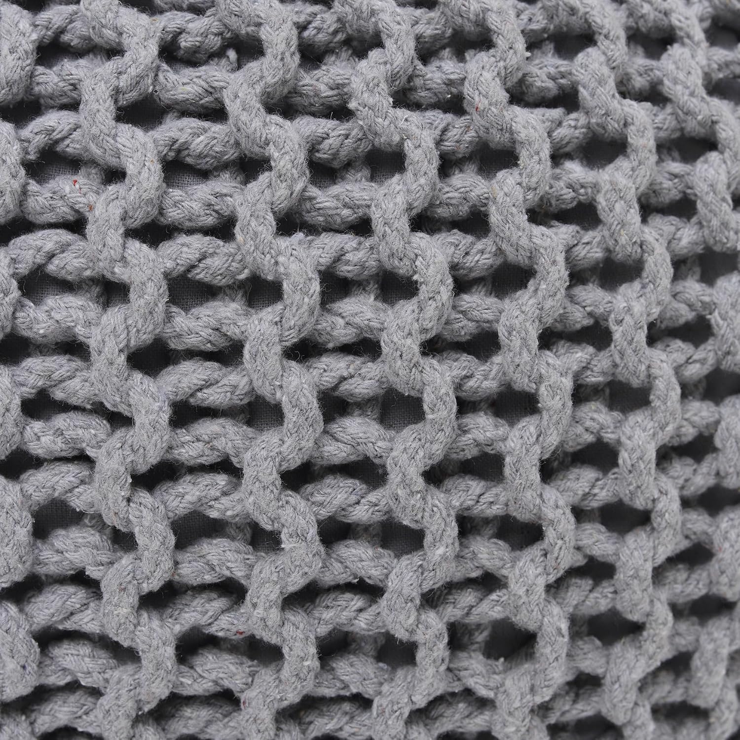 REDEARTH Round Boho Pouf Ottoman - Cable Knitted Cord Boho Pouffe - Stuffed Poof Accent Beanbag Footrest for Living Room - Nursery - Bedroom - Covered Patio - Study Nook (19.5"x19.5"x14") - Gray