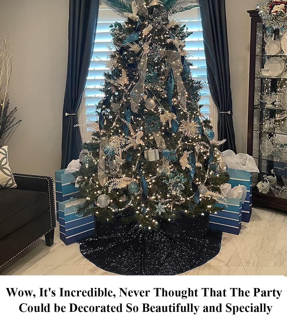 - ā SEQUIN TREE SKIRT: 1pc 24inch black sequined Christmas tree skirt. The small Christmas tree skirt is perfect for under 4' trees small/slim/pencel trees(depending on fullness).