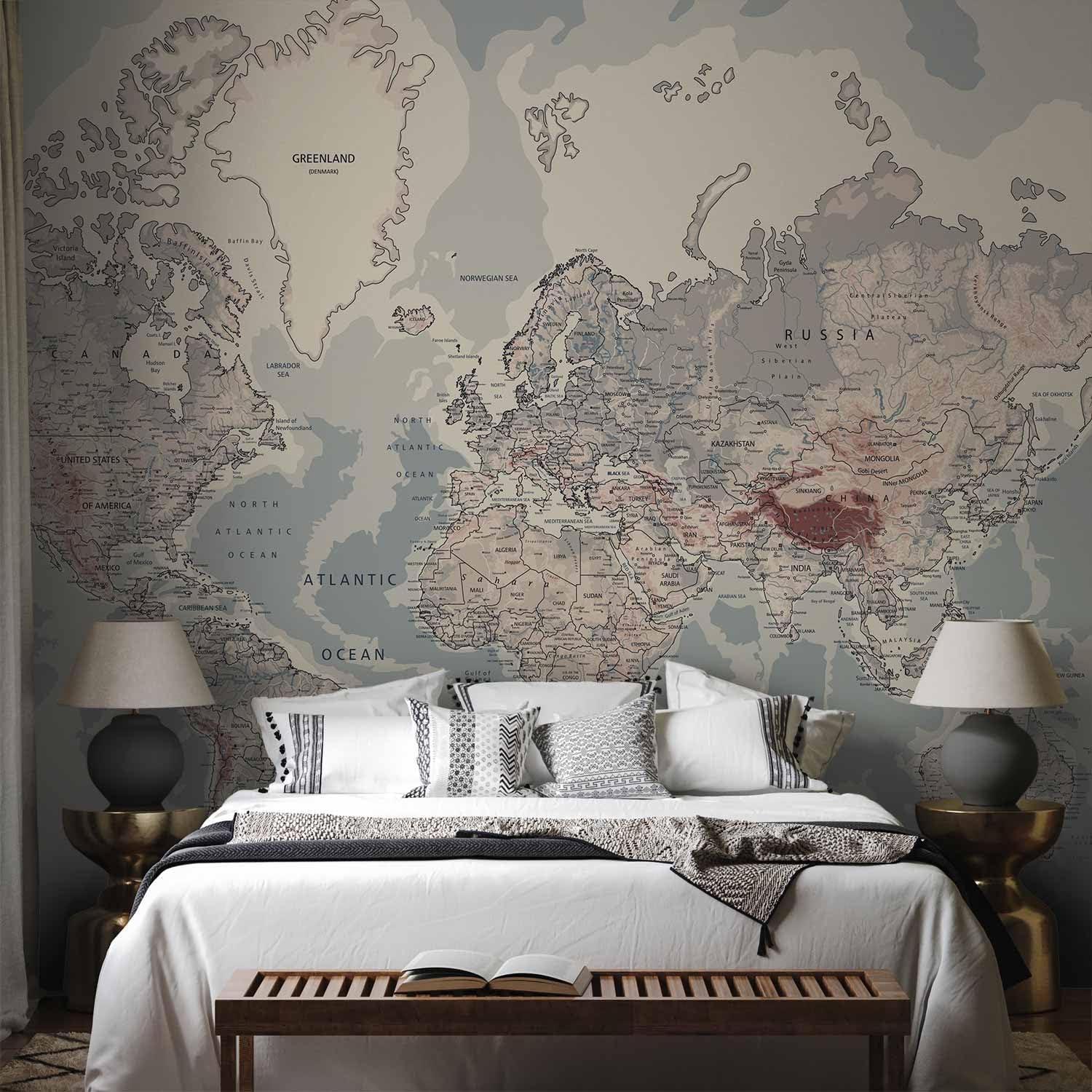 artgeist Wall Mural World Map 173x124 in - Peel and Stick Self-Adhesive Wallpaper Removable Large Sticker Foil Wall Decor Print Picture Image Design Map of The World k-A-0061-a-c