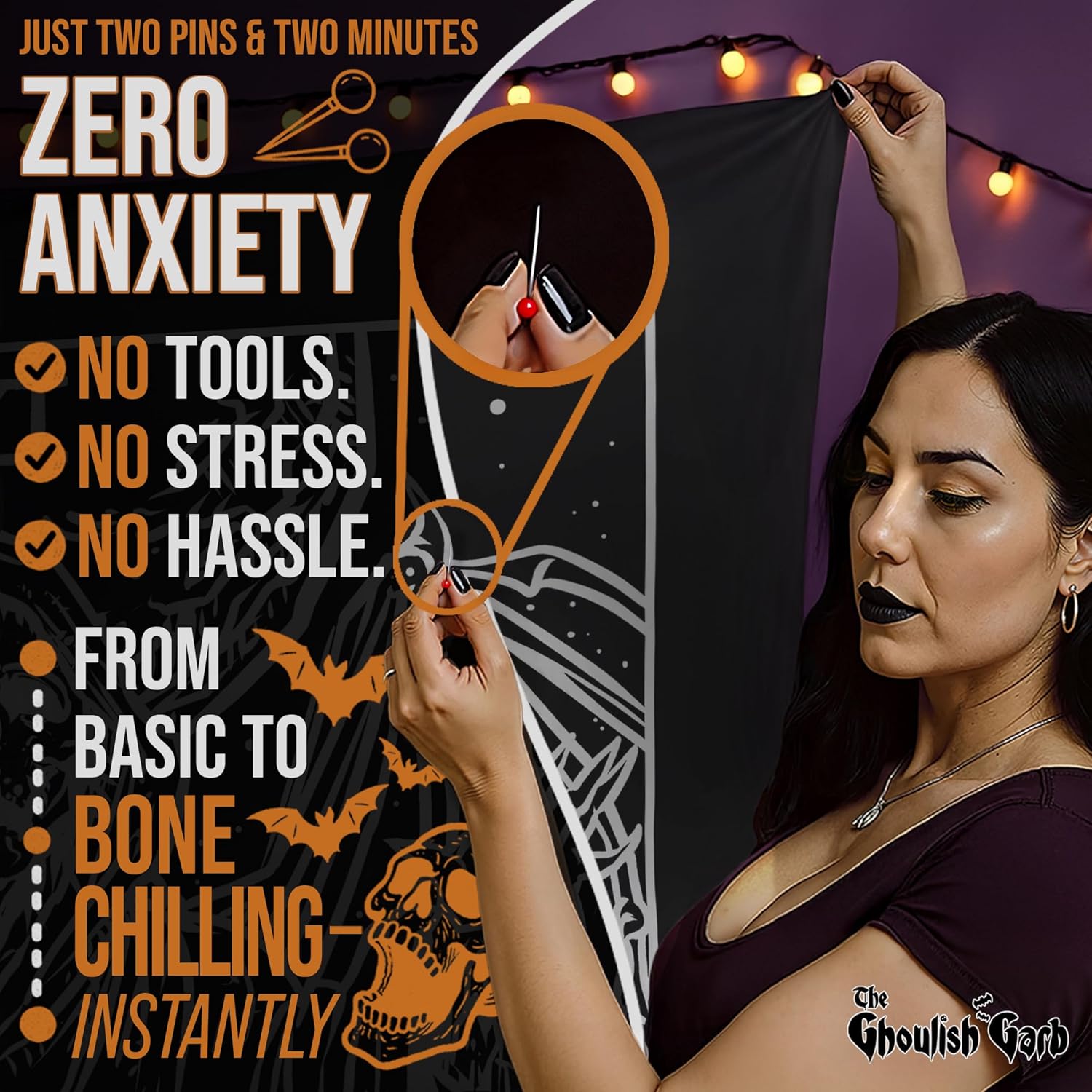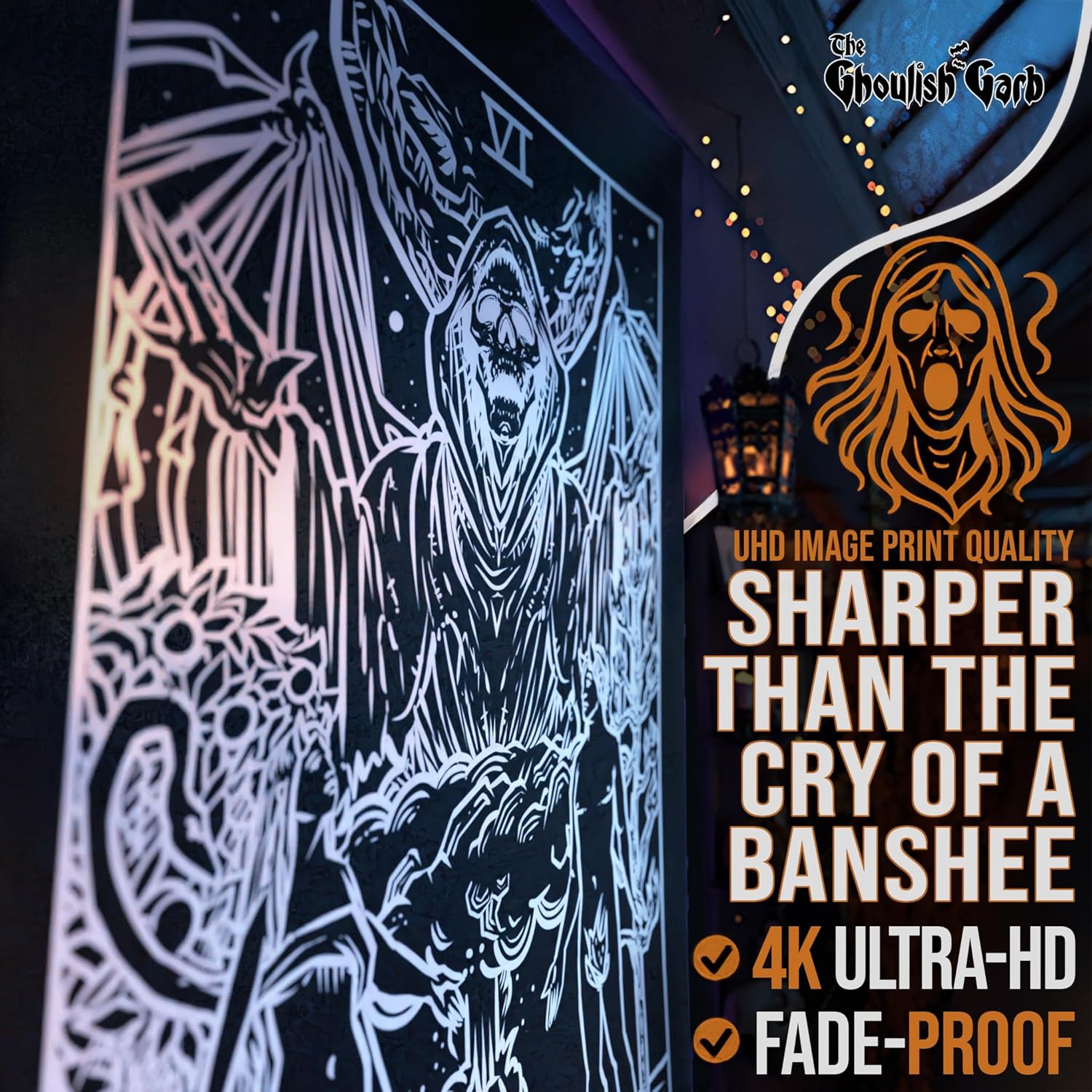 The Lovers Tarot Card Tapestry (Black & White) - Grim Reaper - Gothic Couple Halloween Home Decor Wall Hanging (80" x 68")