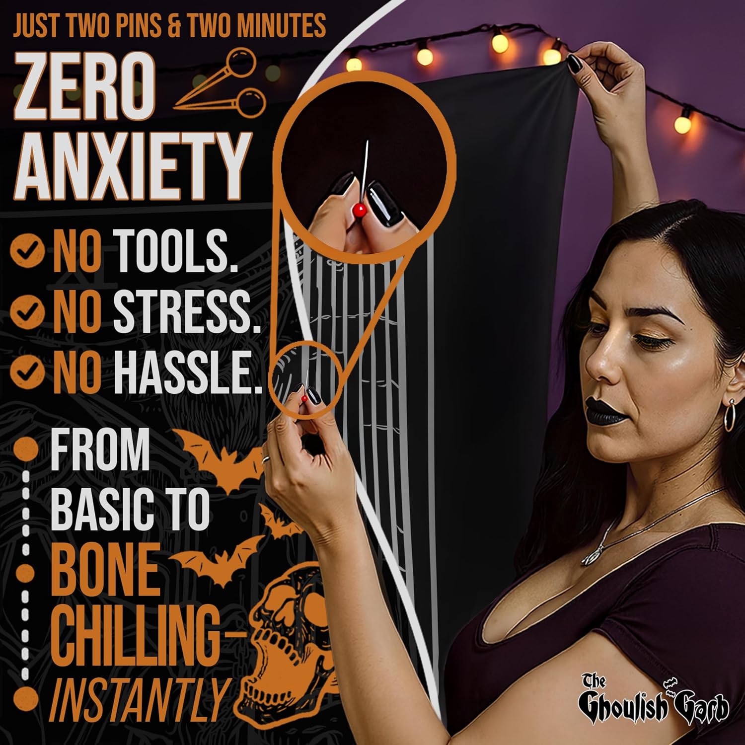 The Ghoulish Garb Justice Tarot Card Tapestry (Black & White) - Grim Reaper - Gothic Halloween Home Decor Wall Hanging (80" x 68")