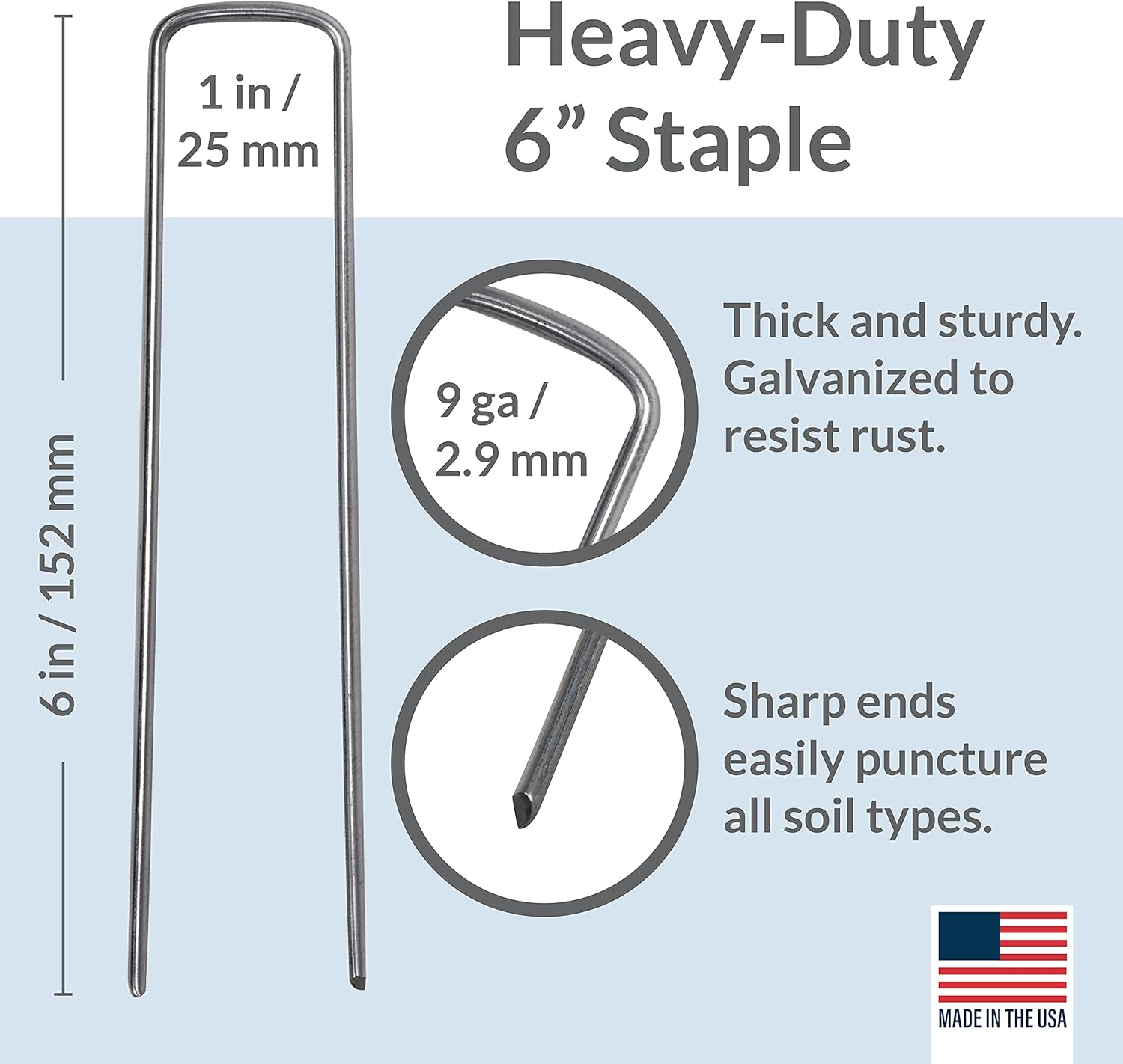 - Extra heavy duty staples: Made from strong, 9 gauge galvanized steel, ideal for hard soils