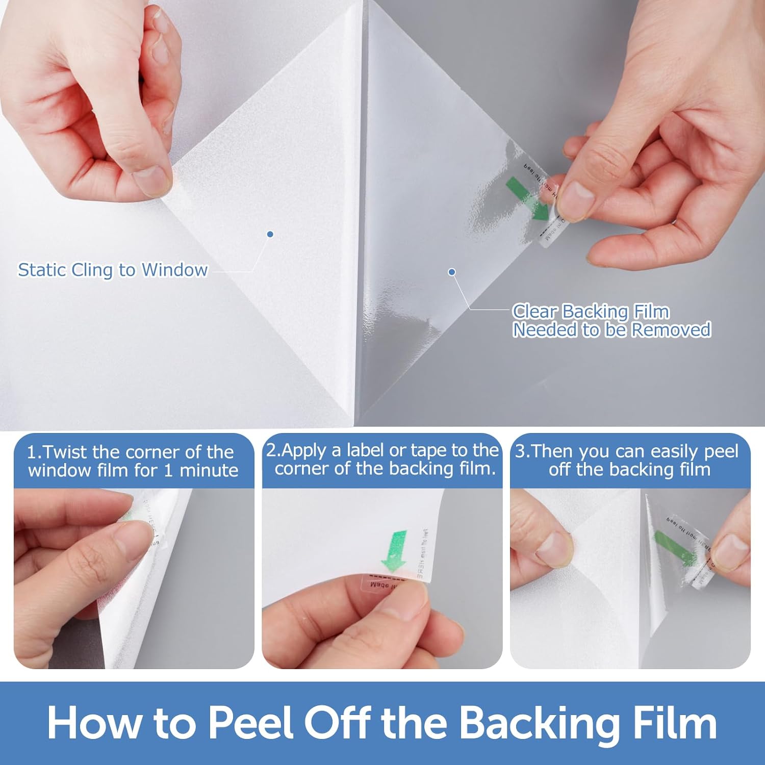 - NO GLUE & Reusable: No glue design keeps you away from the trouble of toxic chemical glue. Static cling window film is easy to install and remove without any residue. More important, you can remove and use it again. The more water you use, the firmer the privacy window film will stick, soapy water is better. For more information on how to install privacy window film, you can refer to our detailed page.
