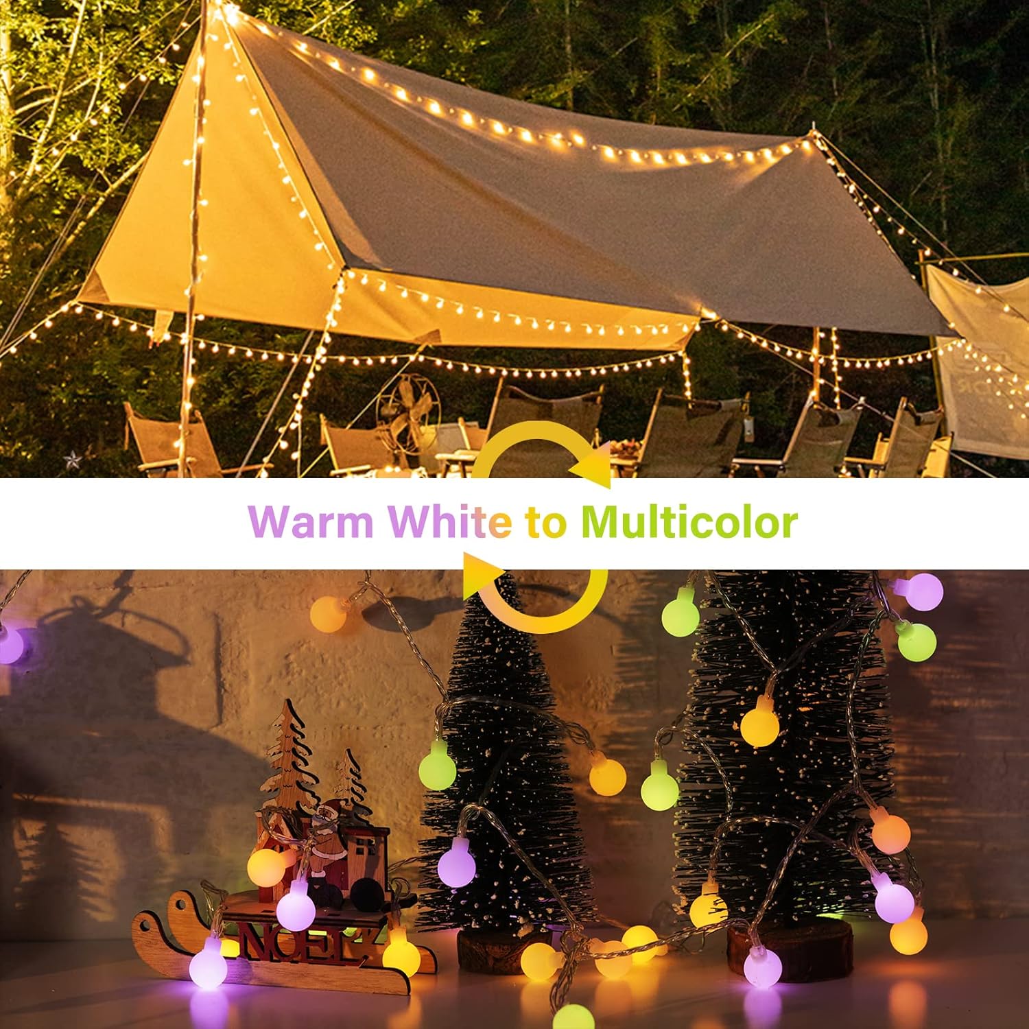 - 2 color options in 1 string: These mini ball string lights have the option of multicolored and warm white color, 2 popular light colors in a single globe string lights, saving you money and space but creating lively atmosphere. Button printed number 5 on the remote is warm white color steady on. Number 6 on the remote is multicolor steady on