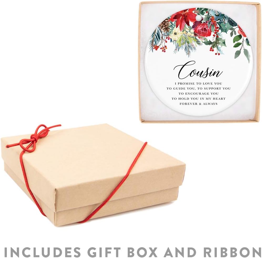 Andaz Press Round Ceramic Porcelain Christmas Tree Ornament Keepsake Gift for Cousins, Cousin I Promise to Love You, to Guide You, to Support You, 1-Pack
