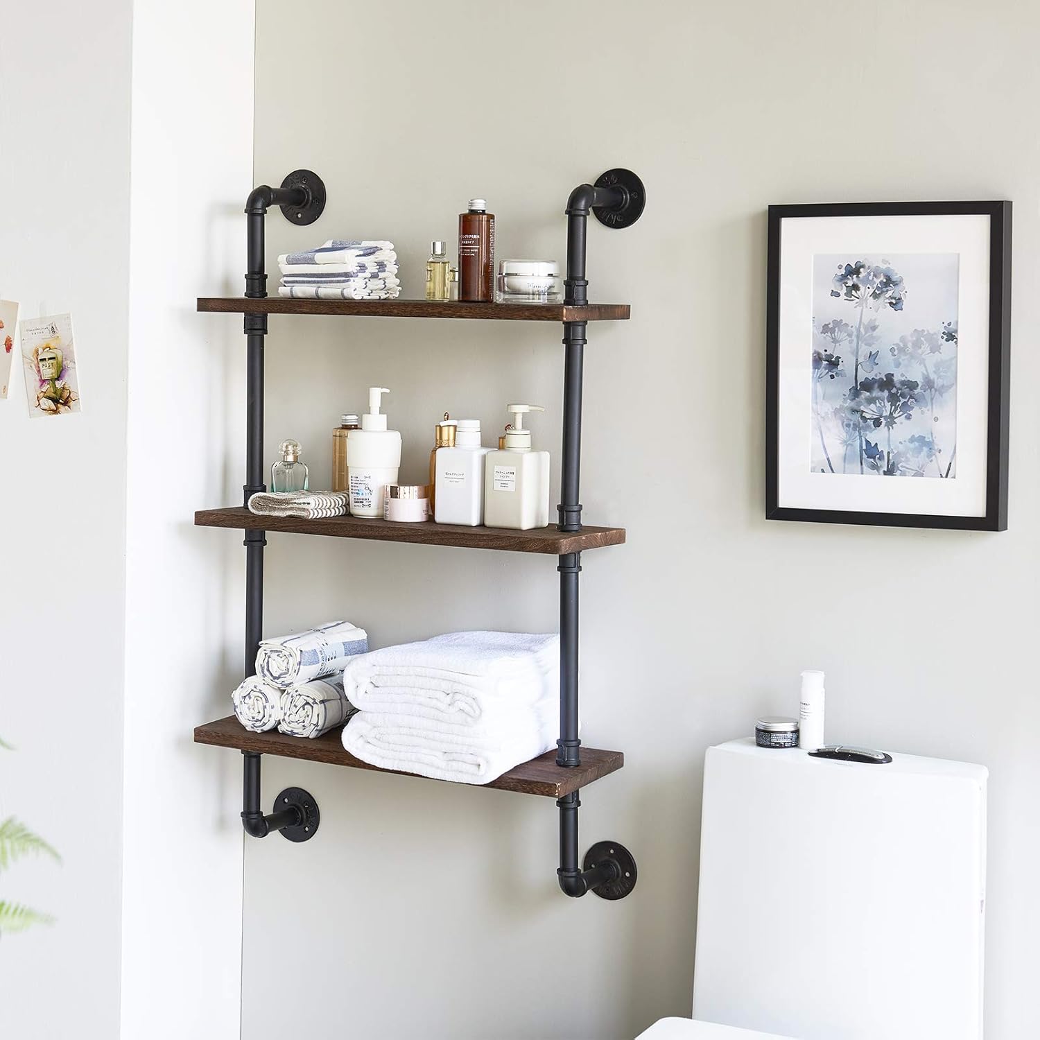 • HIGH QUALITY WALL SHELF: This pipe shelf constructed with particleboard and sturdy metal pipe, that bears high weigh, which is beneficial for storing items. The appearance of the product is high temperature painted and retro design, it is not easy to rust.