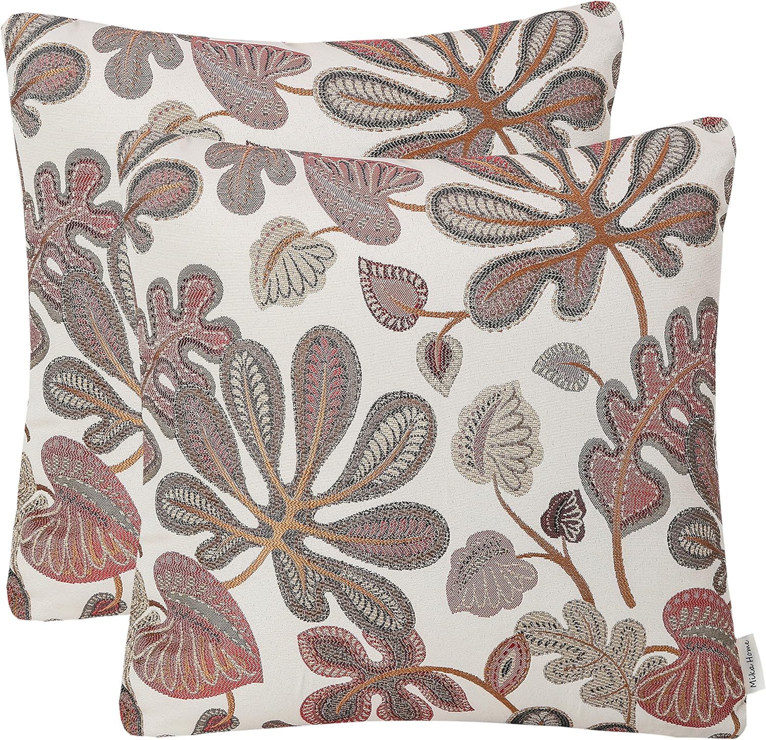Set of 2 Jacquard Tropical Leaf Pattern Throw Pillow Covers Decorative Pillowcase 22X22 Inches,Coral Cream