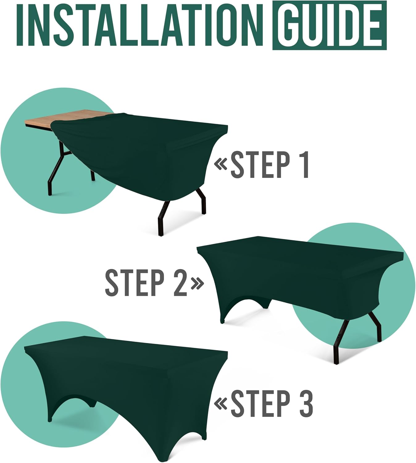- Snug Fit with Reinforced Pockets: Designed for a 6-foot table (72"L x 30"W x 30"H), this 2-way stretch spandex cover features reinforced leg pockets to ensure a secure, professional look that won’t slip or ride up.