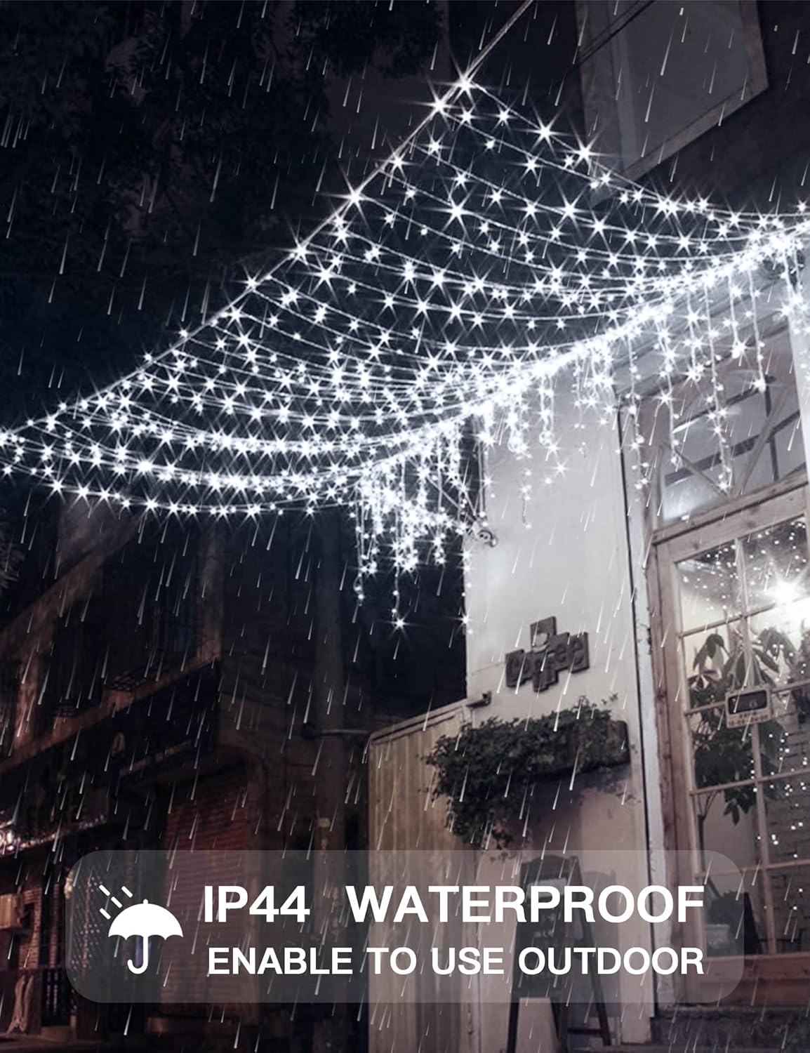 - [IP44 WATERPROOF/ SAFETY] The IP44 waterproof grade is adequate protection against rain and snow, which means the white curtain lights can be used outdoor safely. (Note that the USB is not waterproof.) Curtain fairy lights and the USB will always keep a low temperature. Itβs 100% safe to touch.
