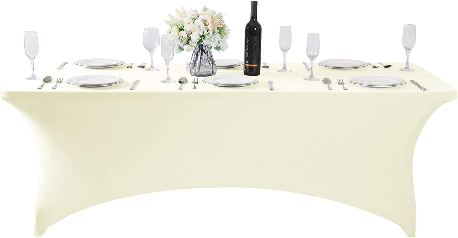 Spandex Table Cover for 8FT or 4ft or 6ft Table Universal Fitted Stretch Tablecloth for Party, Banquet, Wedding and Events-Ivory