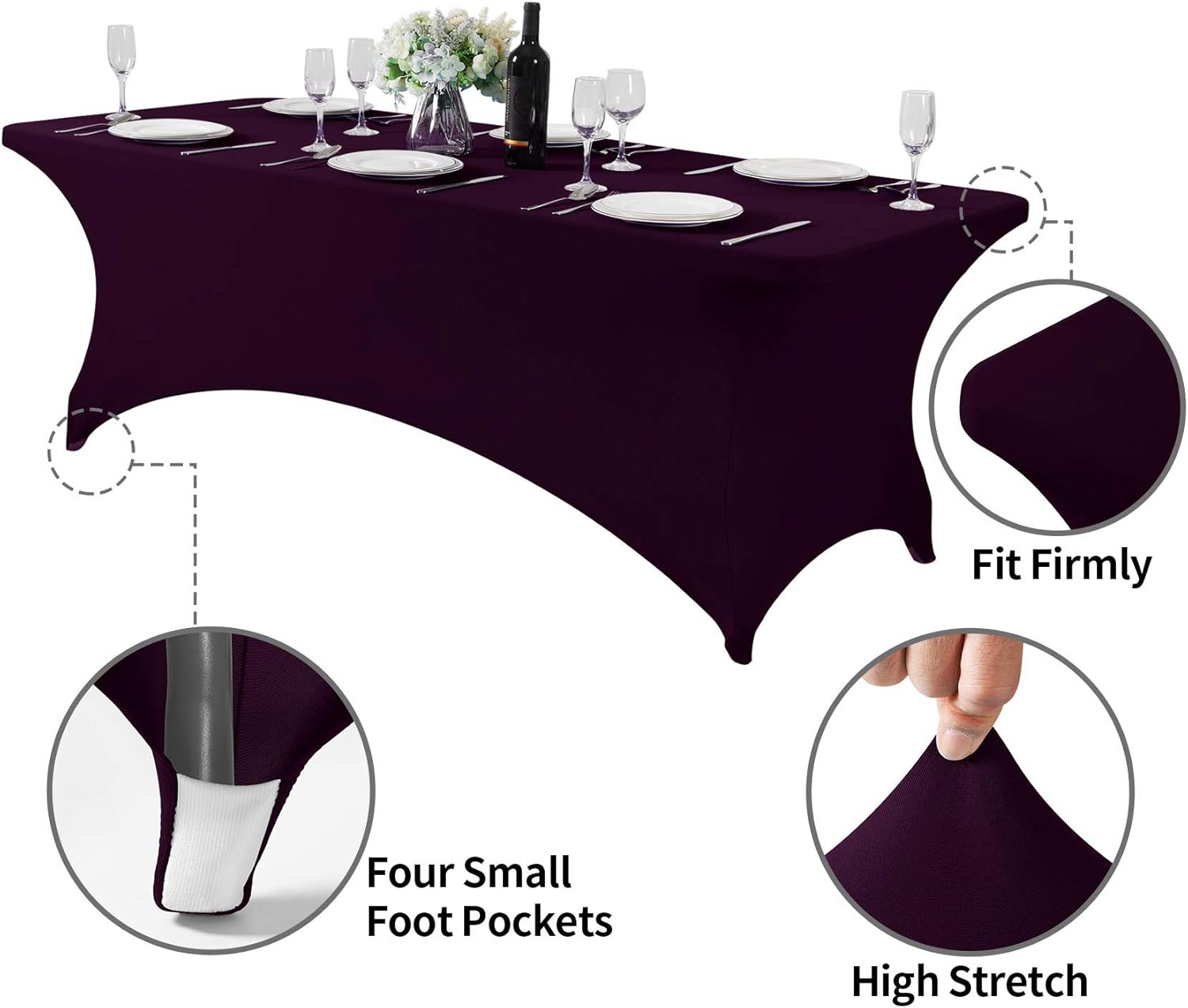 Spandex Table Cover for 8FT or 4ft or 6ft Table Universal Fitted Stretch Tablecloth for Party, Banquet, Wedding and Events-Eggplant