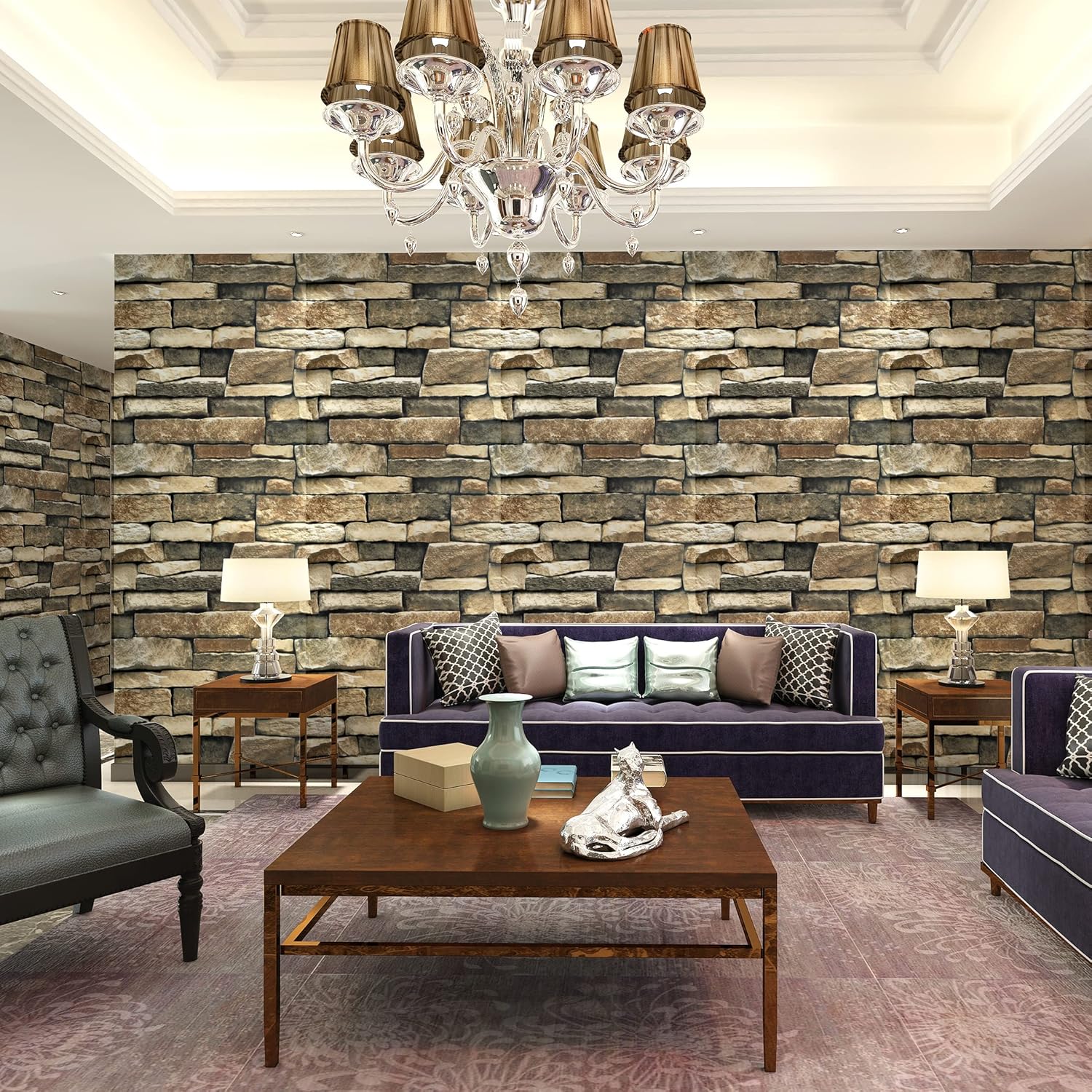 TUOKING Peel and Stick Stone Wallpaper Self-Adhesive Removable Wallpaper Home Decoration for Bedroom, Kitchen 17.7 in x 9.8 ft, Stone Brick