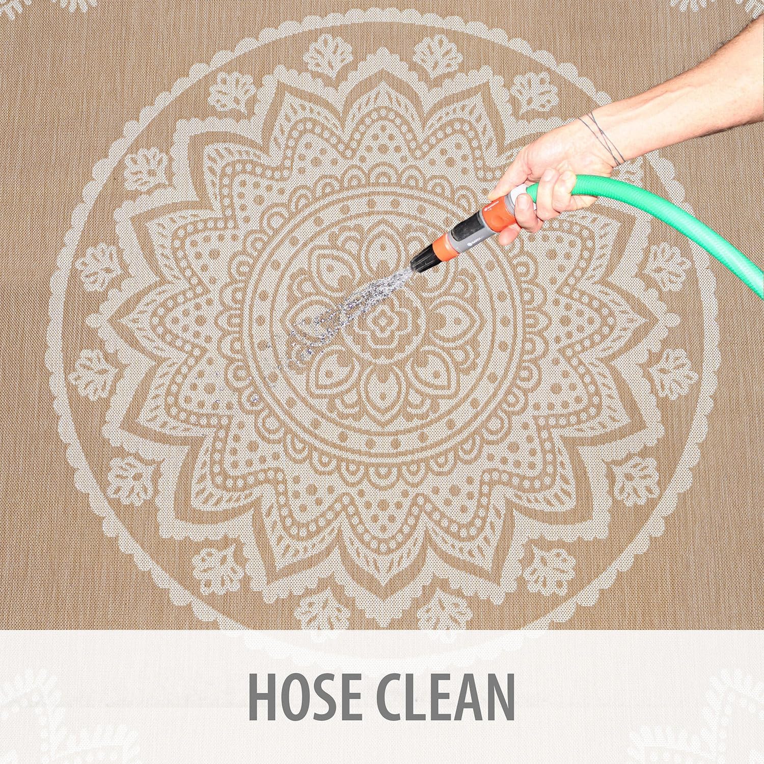 CAMILSON Outdoor Rug 8x10 Modern Area Rugs for Indoor and Outdoor Patios and Porches - Waterproof, Washable, Non-Shedding, Easy-to-Clean Outside Carpet (8 x 10, Medallion - Beige/White)