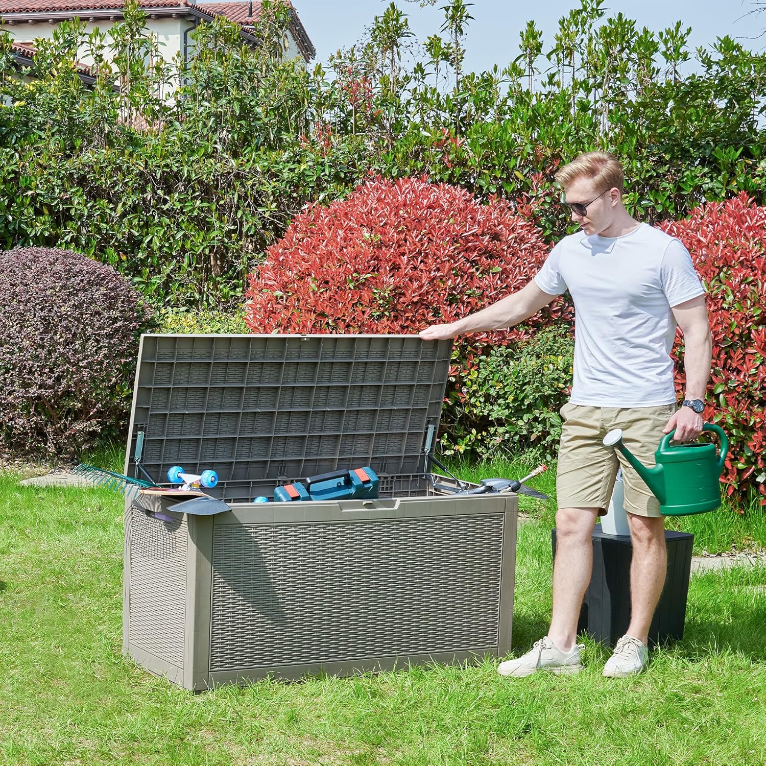 - VERSATILE STORAGE- Can be used indoors or outdoors to store patio furniture cushions, gardening tools, outdoor supplies, and pool accessories; Lockable lid safely protects your items.