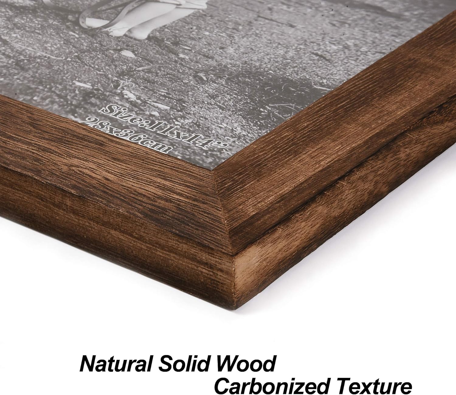 Yaetm-11x14 Picture Frame, Natural Solid Wood Photo Frame Display for Wall Mounting, High Definition Glass Carbonized Black(2 Pack)