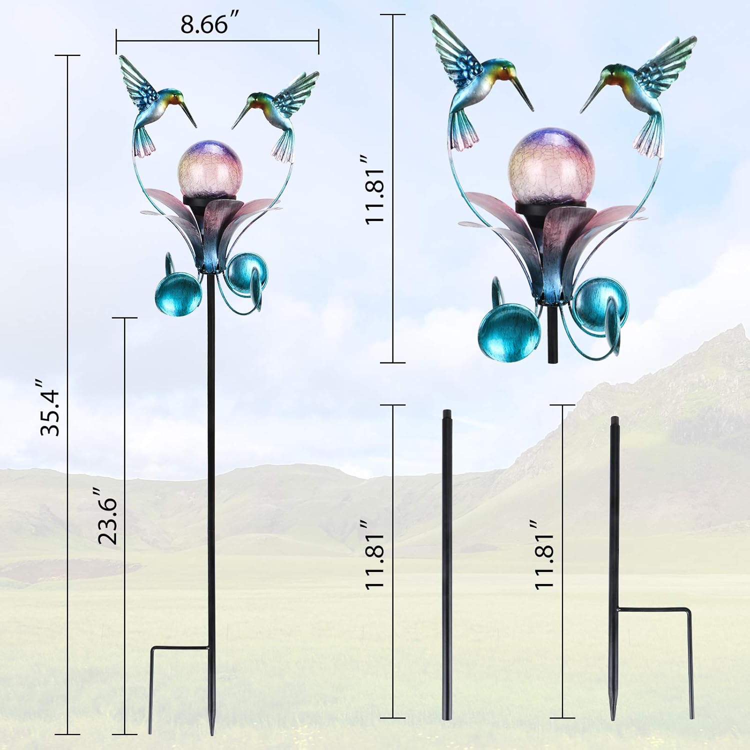 VCUTEKA Solar Lights Outdoor Metal Garden Stake Waterproof Crackle Glass Globe Garden Decor Hummingbird for Pathway, Lawn, Patio, Yard