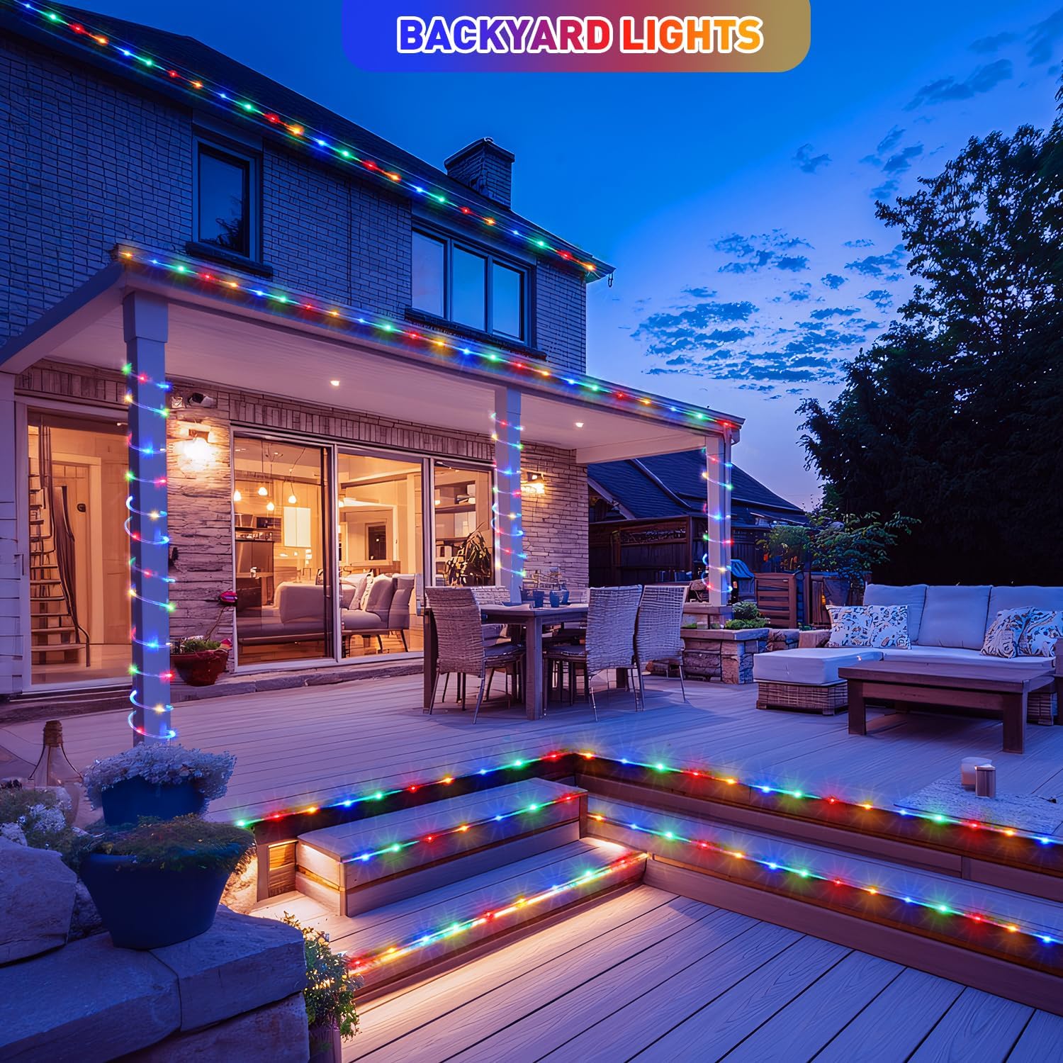 - [FLEXIBLE AND WIDELY USED] The high-quality flexible and foldable clear PVC tube is cleverly matched with a copper wire solar rope light. It can easily build the shapes you need, and decorate whatever you want with these sparkling and magical waterproof rope lights! It is an ideal decoration for courtyards, fences, bars, weddings, trees, decks, roofs, hotels, yards, gardens, terraces, streets, commercial buildings, shopping centers, Christmas, and trampolines.