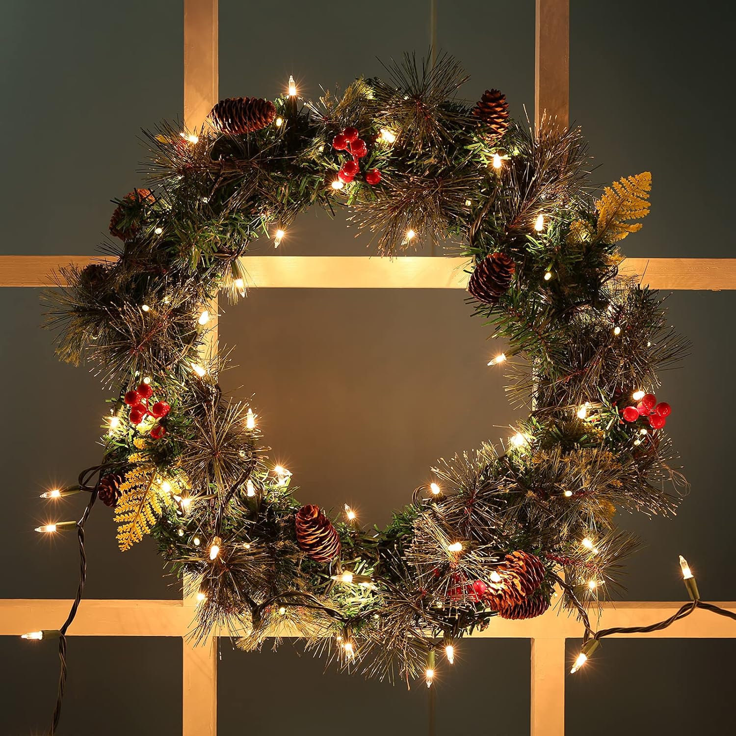 - š Bright Warm White Xmas Tree Lights: This warm white mini christmas lights, beautiful and soft, stable without glare. Easy to lighting use, especially when wrapping trees and bushes. White glow mini lights, which will create a beautiful and romantic lighting effect, perfect to light up Christmas wreath, Christmas tree, fireplace, furnace wall decorations.