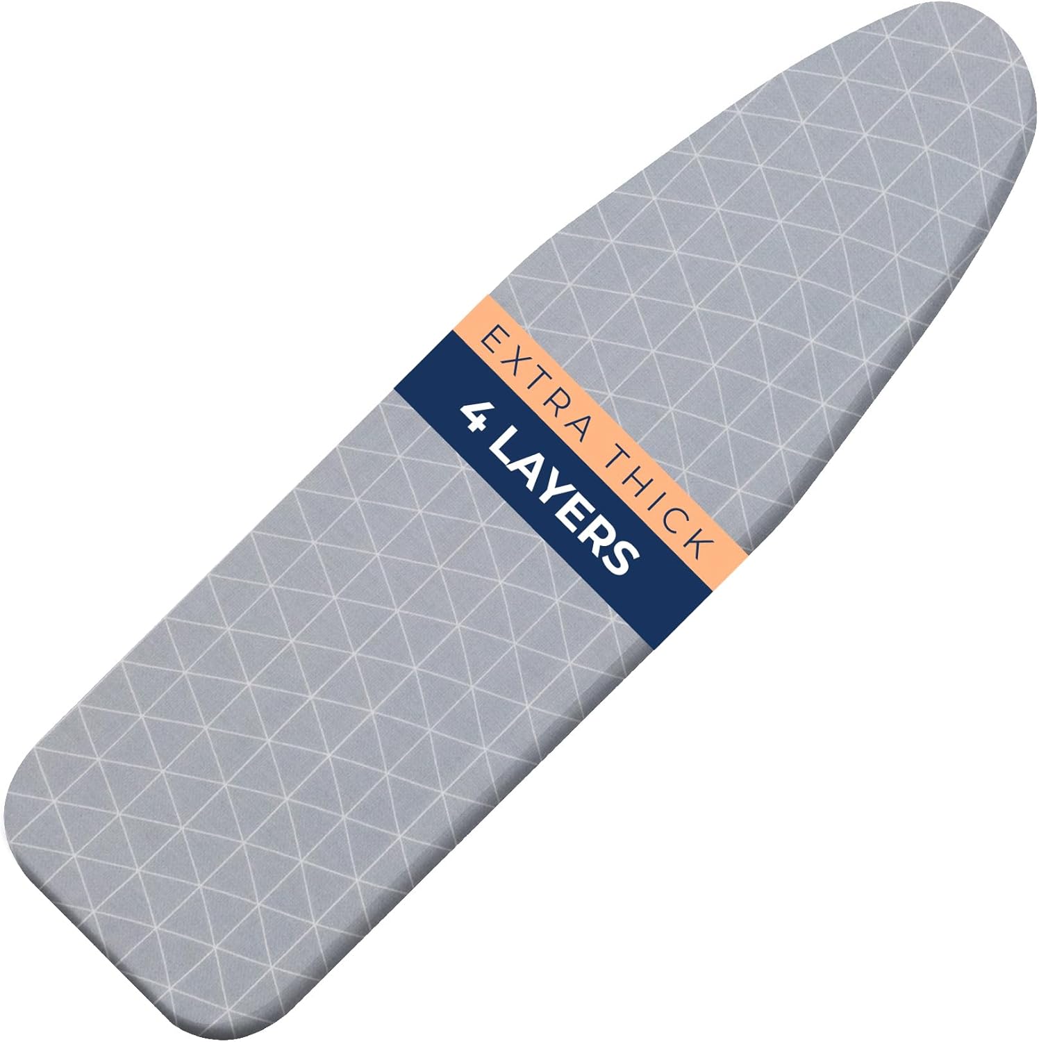 - 3 LAYERS EXTRA THICK PADDING FOR REMARKABLE DURABILITY - 3 layers heavy duty padding provides exceptional durability to ironing board cover and pad. Top layer (1st) is extremely scorch and stain resistant cotton fabric. Eco foam (2nd) provides better steam circulation. Durable and thick felt lining (3rd) will maintain a flat shape during ironing.
