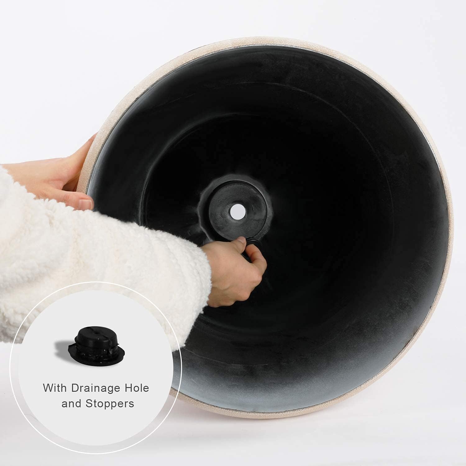 - Optional Drainage System: These urn planter comes with a drill hole in the bottom to drain the stagnant water, also with a removable rubber plugs to store the water needed by your plants.