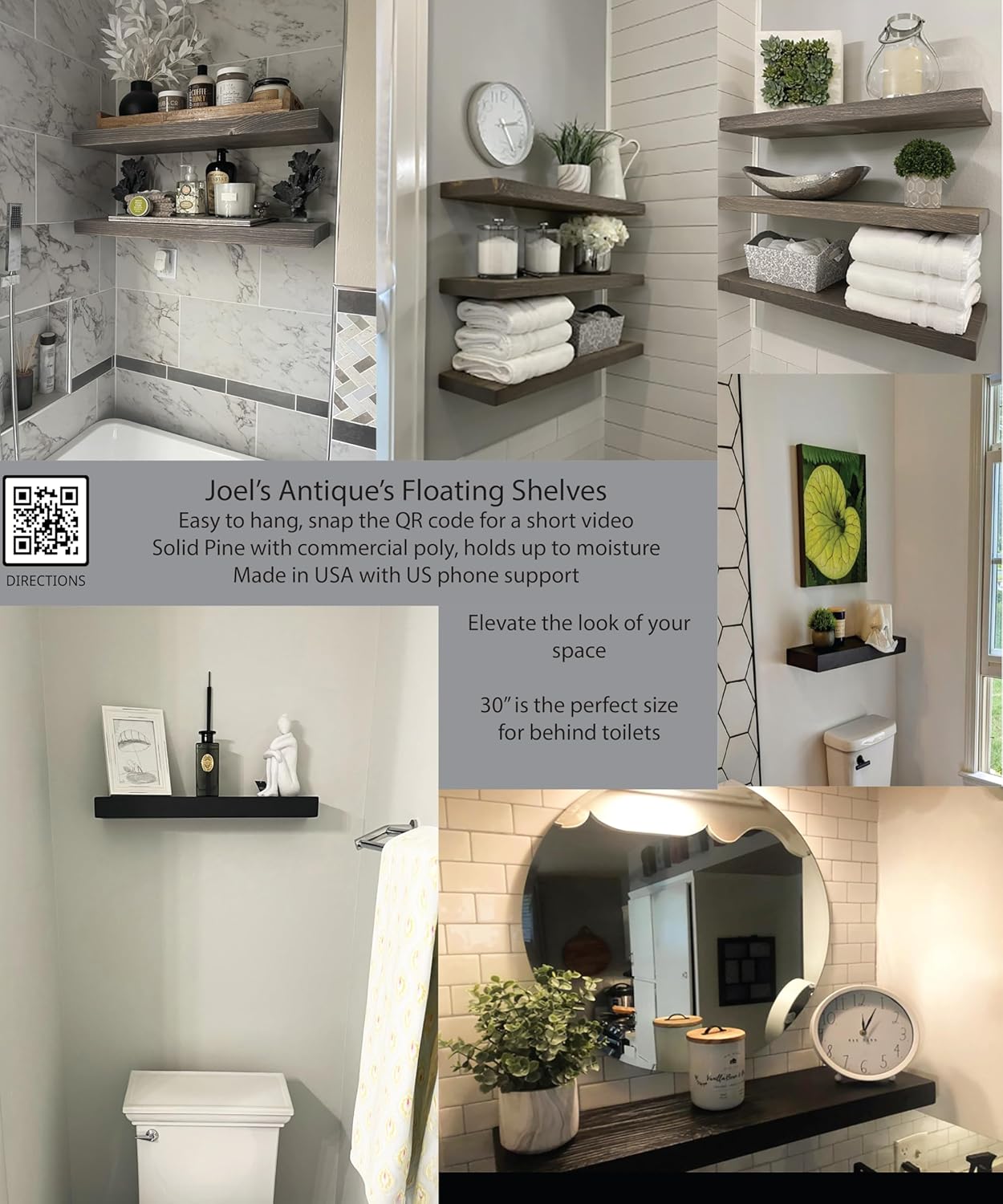 Joel's Antiques - 30 Inch Wooden Floating Shelves for Wall - 30x8x2 in - Made of Natural Wood - Heavy Duty Rustic Wall Shelves for Bedroom - Perfect for Living Room, Kitchen - Black