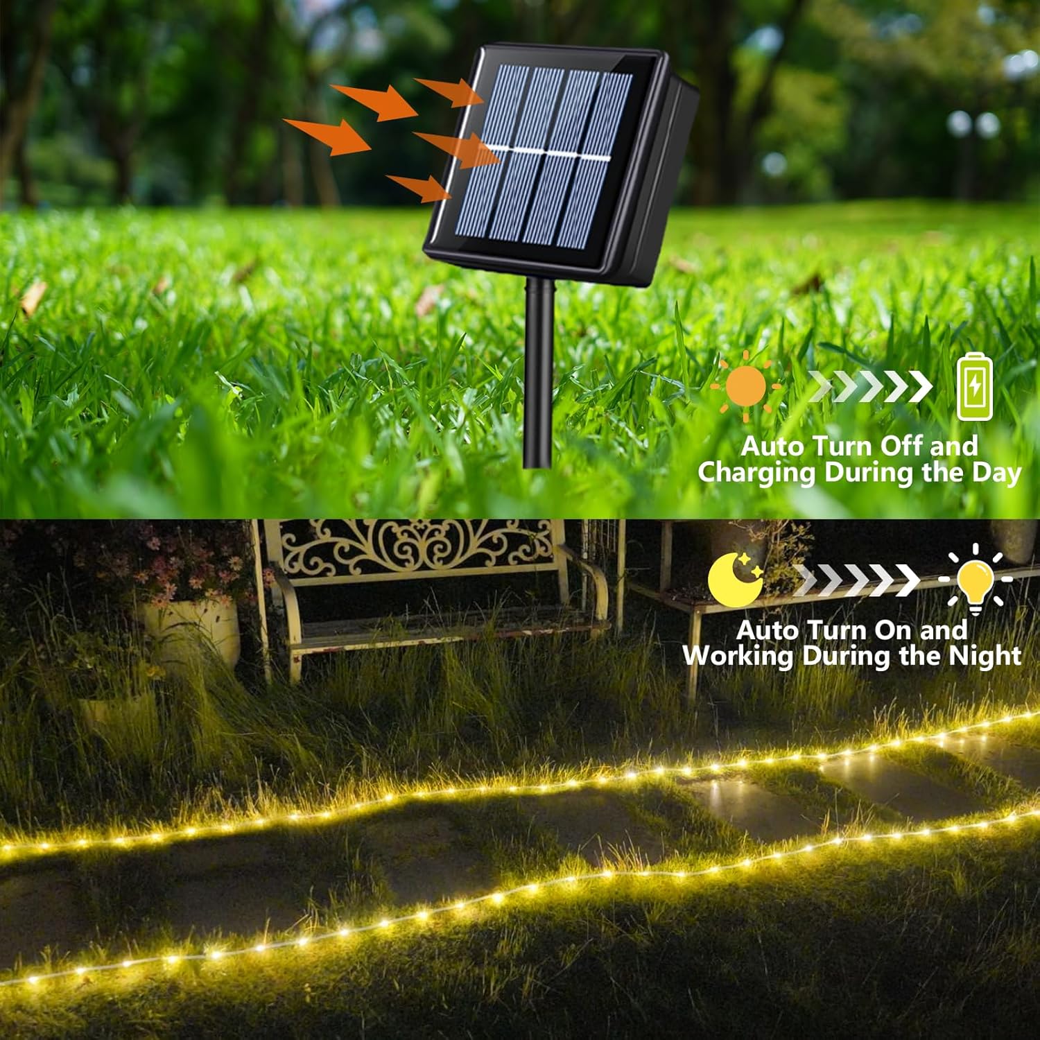 - 8 Modes: Solar Rope lights feature 8 different mode settings on the back of solar panel to create a magical, fairy garden feel at night!