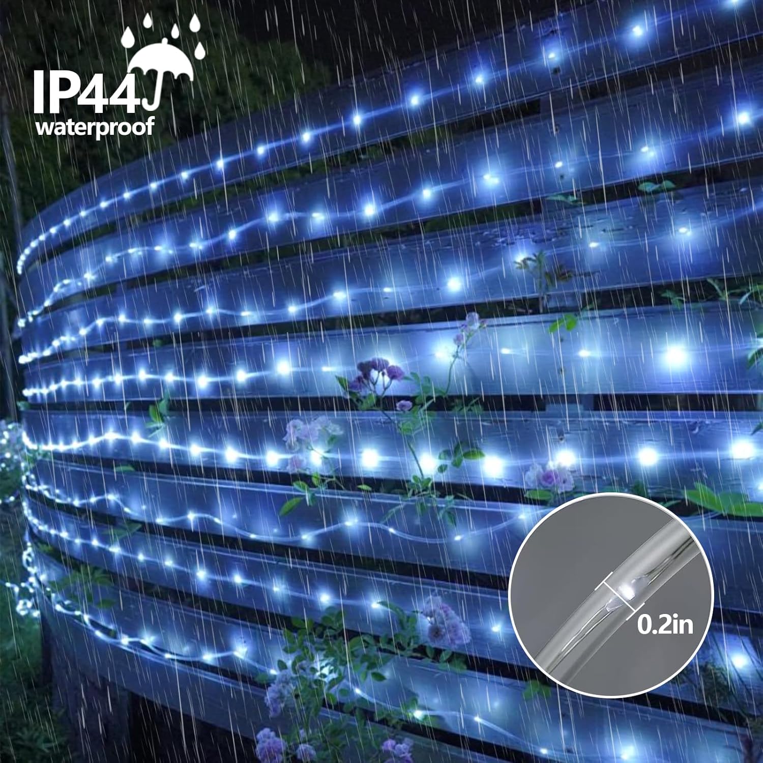 - IP44 Waterproof: Both the rope string lights and the solar panel are waterproof for outdoor use.