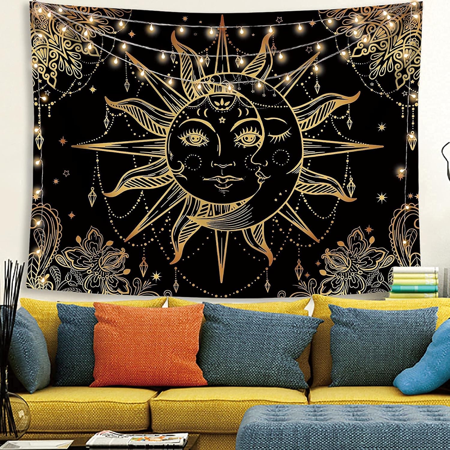 Lunerfex Hippie Sun and Moon Tapestry Bohemian Tapestry Aesthetic Cute Tapestries for Bedroom and Living Room Decor Sun 50×60 Inches