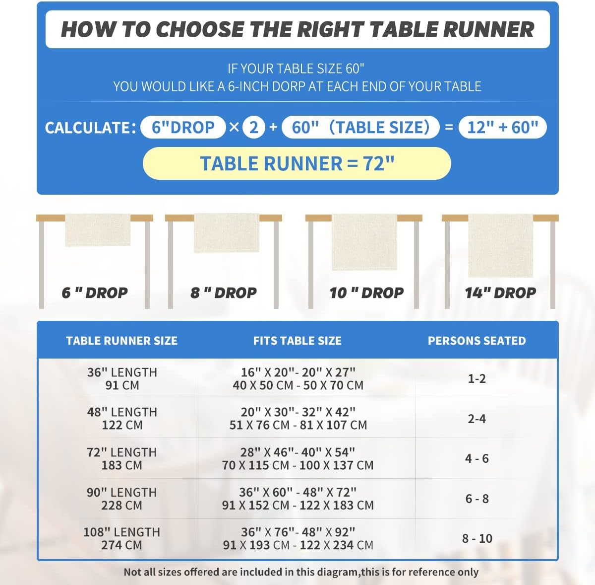 - Fits Table Size : This table runner is 13 x 108 inch, appropriate for a table that can seat 8-10 people, better match your table and give you a delightful dining experience