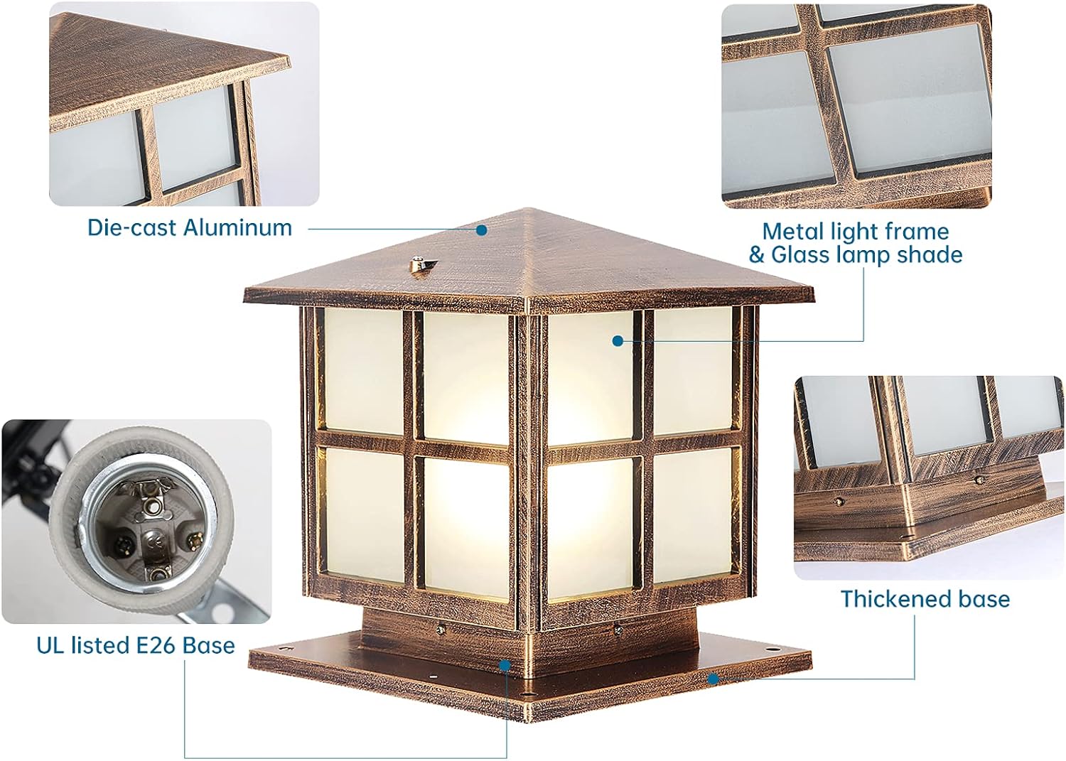 - ā Vintage Pillar Lantern for Exterior House Decoration: Featuring an unique lamp body design and glass shade, completely weather-resistant for any outdoor environment, perfect for garden, backyard, courtyard, patio, balcony, porch, pathway or entryway.</br>