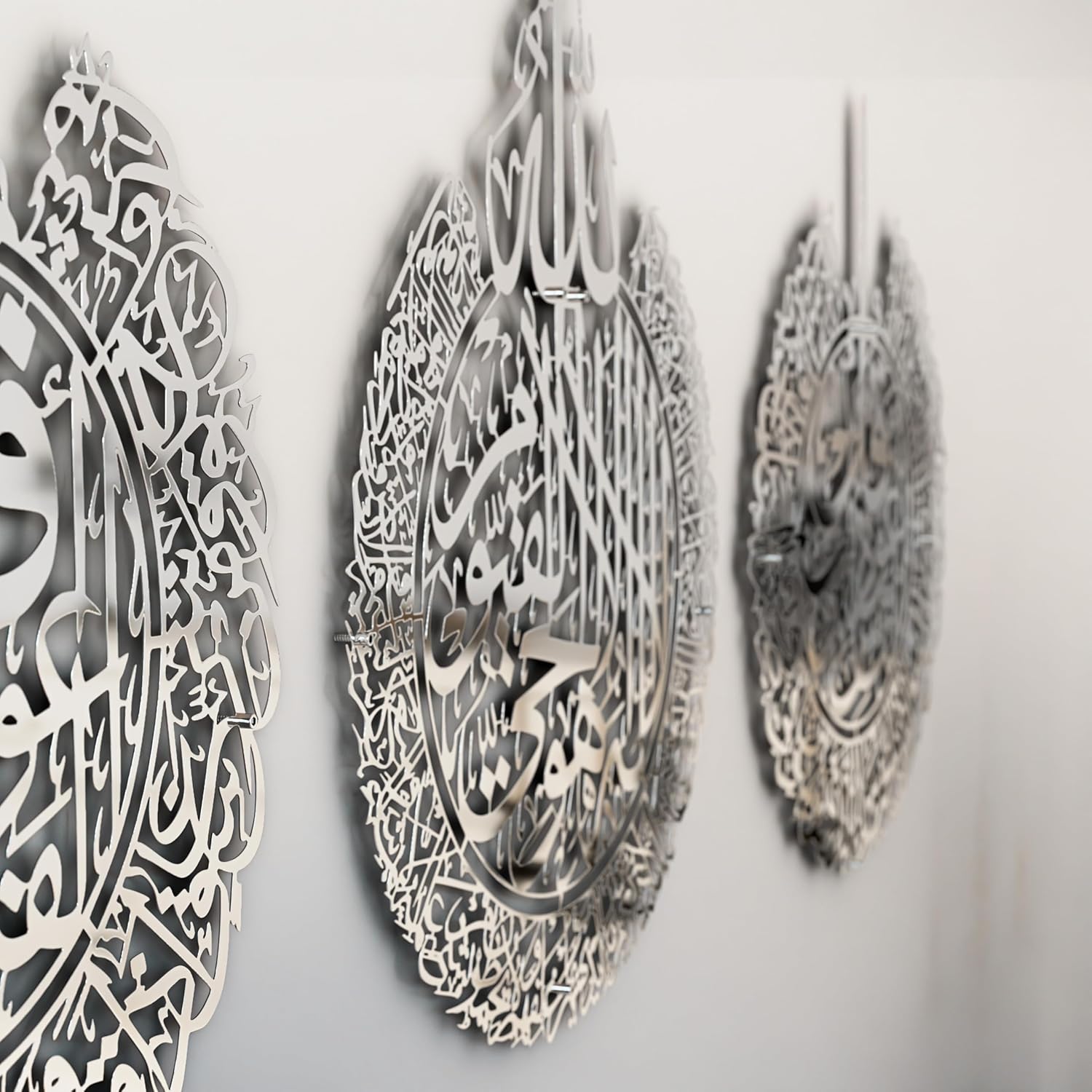 IWA CONCEPT Metal Set of Ayatul Kursi, Surah Al Falaq and Surah An Nas,Islamic Ramadan Wall Decorations,Modern Muslim Housewarming Gift,Arabic Calligraphy,Quran Wall Art,(Shiny Silver, Large)