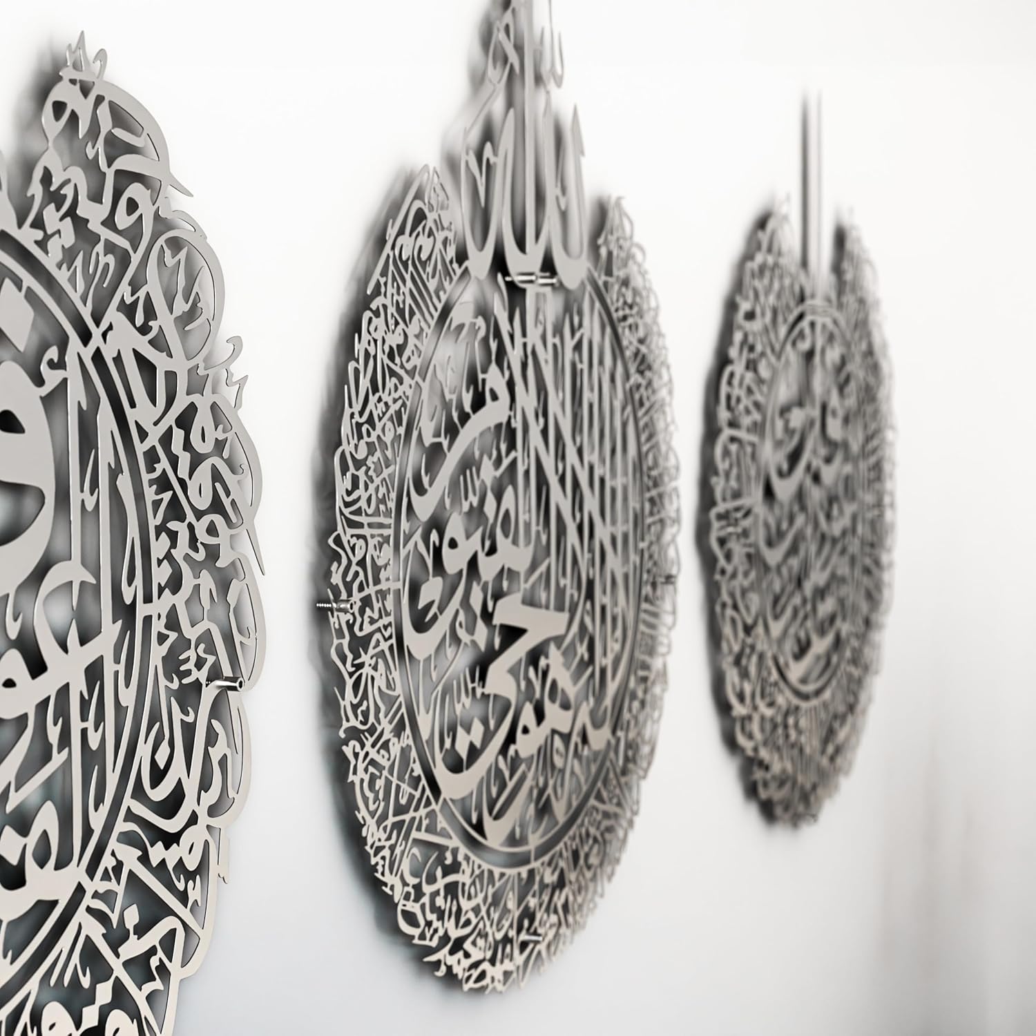 IWA CONCEPT Metal Set of Ayatul Kursi, Surah Al Falaq and Surah An Nas | Islamic Ramadan Wall Decorations | Modern Muslim Housewarming Gift | Calligraphy | Quran Wall Art | (Matte Silver, Large)