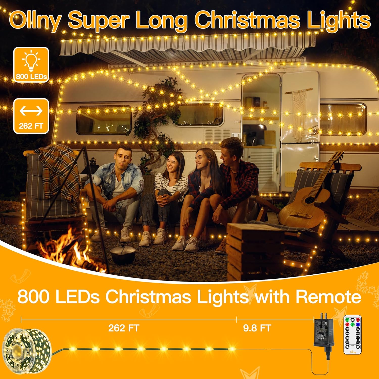 - Tangle-Free Design: Ollny Christmas lights feature embedded bulbs for a sleek cord, eliminating tangles common with traditional lights; perfect for easy storage and setup.(262ft long and extra 9.8ft extension cord)