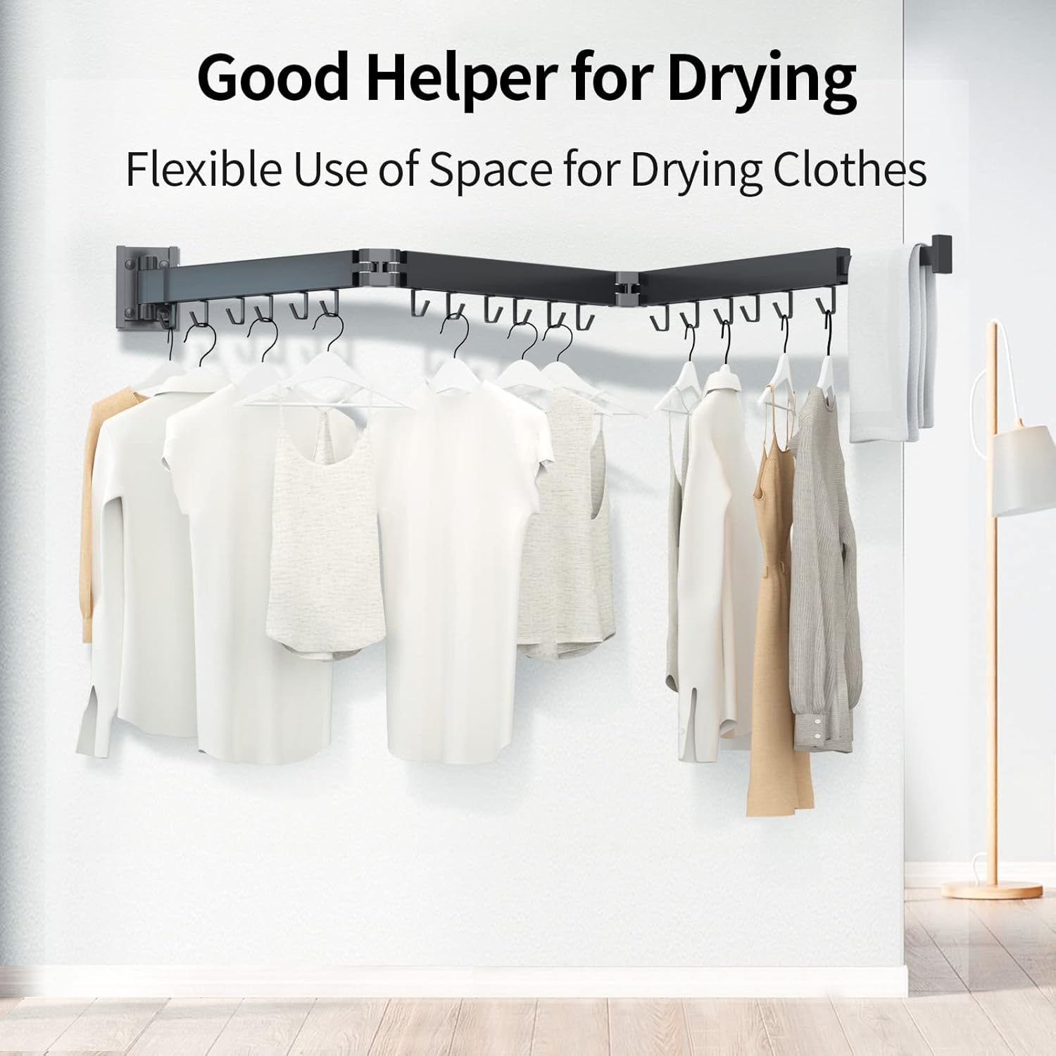 - β Flexible & Space Saving Design -- This innovative clothes drying rack wall mounted can swing 180 Β° to the left and right, allowing you to maximize your drying space. Also includes 12 hooks that can rotate 360Β° and a hidden telescopic rod. When not in use, simply fold down to a compact size to keep your area clutter-free