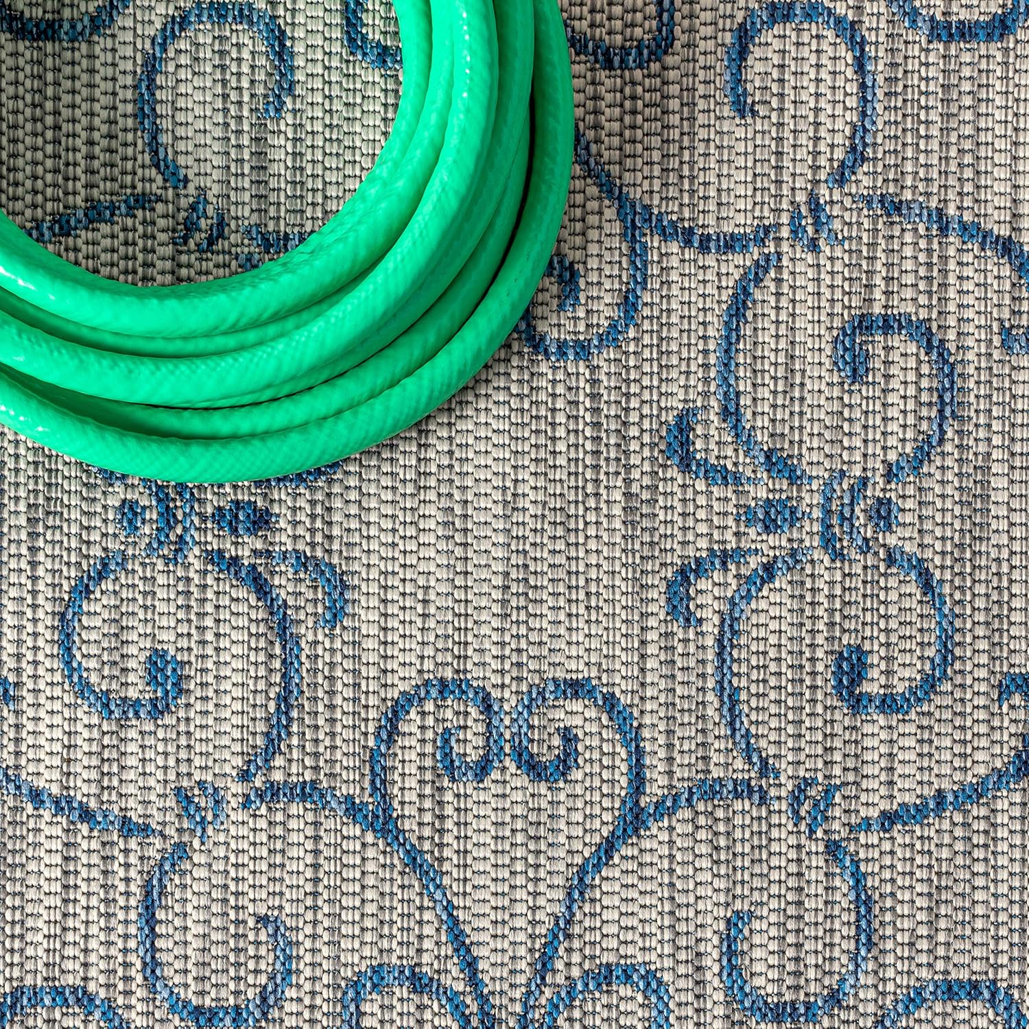 JONATHAN Y Vintage Filigree Indoor Outdoor Round Area Rug 5 Ft Gray/Navy, Charleston Textured Weave for Backyard, Patio, Porch, Easy-Cleaning, High Traffic, Pet-Friendly, Non-Shedding (SMB106C-5R)