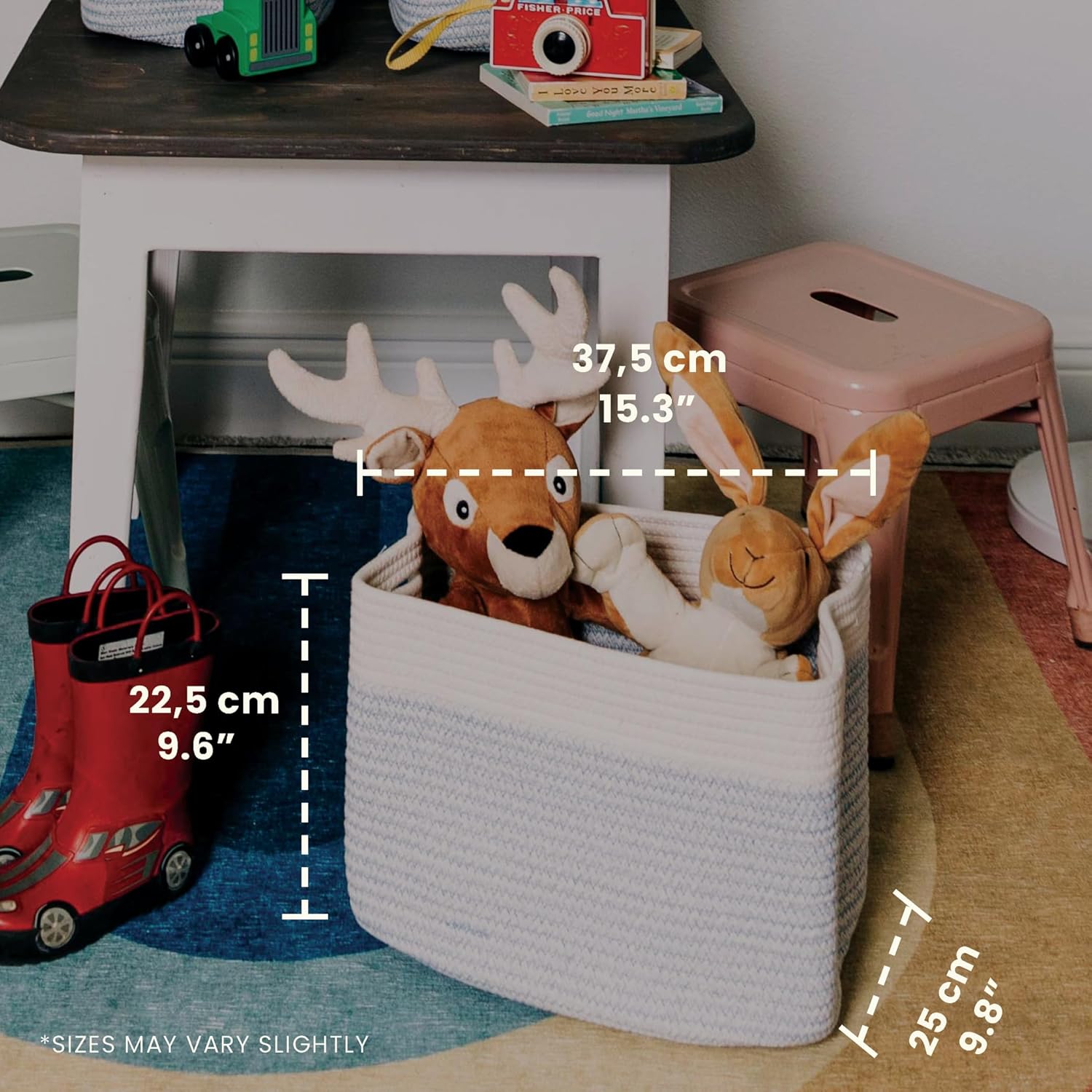 OrganiHaus Woven Storage Baskets for Organizing, Cotton Rope Organizer Bins for Shelves, Closet & Nursery, Dog Toy Basket, Decorative Bins for Toys, Towels & Books - 15x10x9, Blue/Off-White