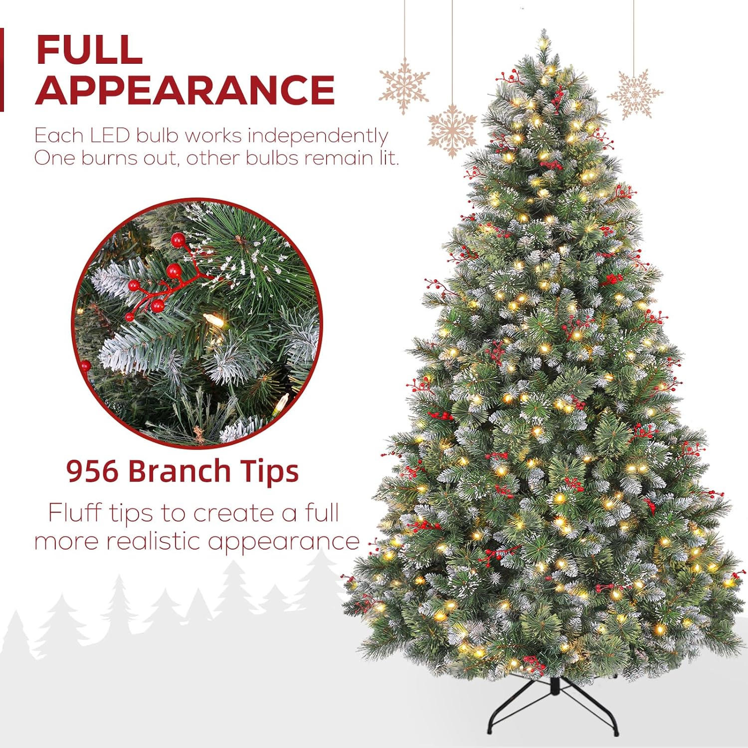 - Natural & Lush Look:ββ Experience a luxuriously full 6ft Christmas tree adorned with 956 PVC branch tips and realistic red berries. Snow-dusted pine needles create an enchanting wintry charm, while hassle-free assembly and ample decoration space ensure effortless elegance.